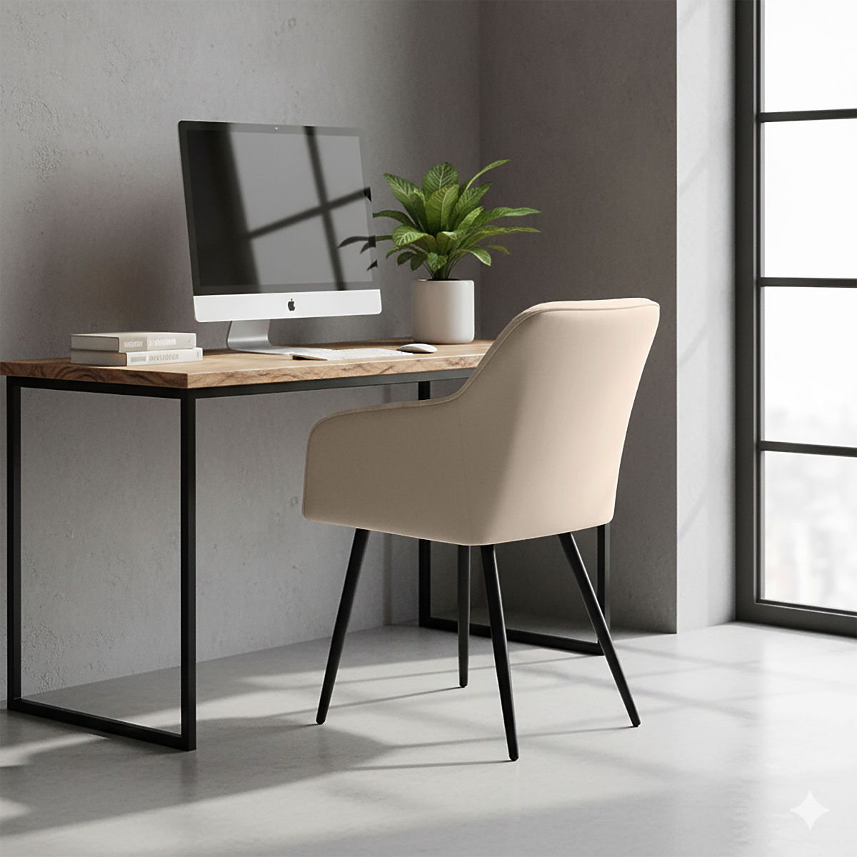 Banaby.eu » Furniture / Dining room / Dining chair / 4x Upholstered Chair with Square Quilting Beige LUXANO Black Legs
