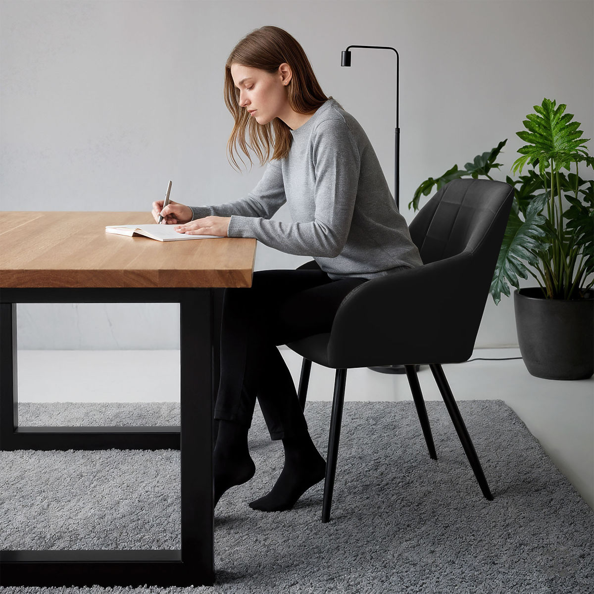 Banaby.eu » Furniture / Dining room / Dining chair / 4x Upholstered Chair with Square Quilting Black LUXANO Black Legs