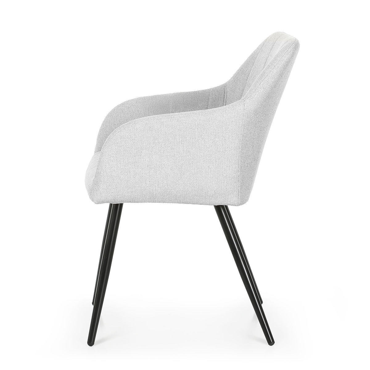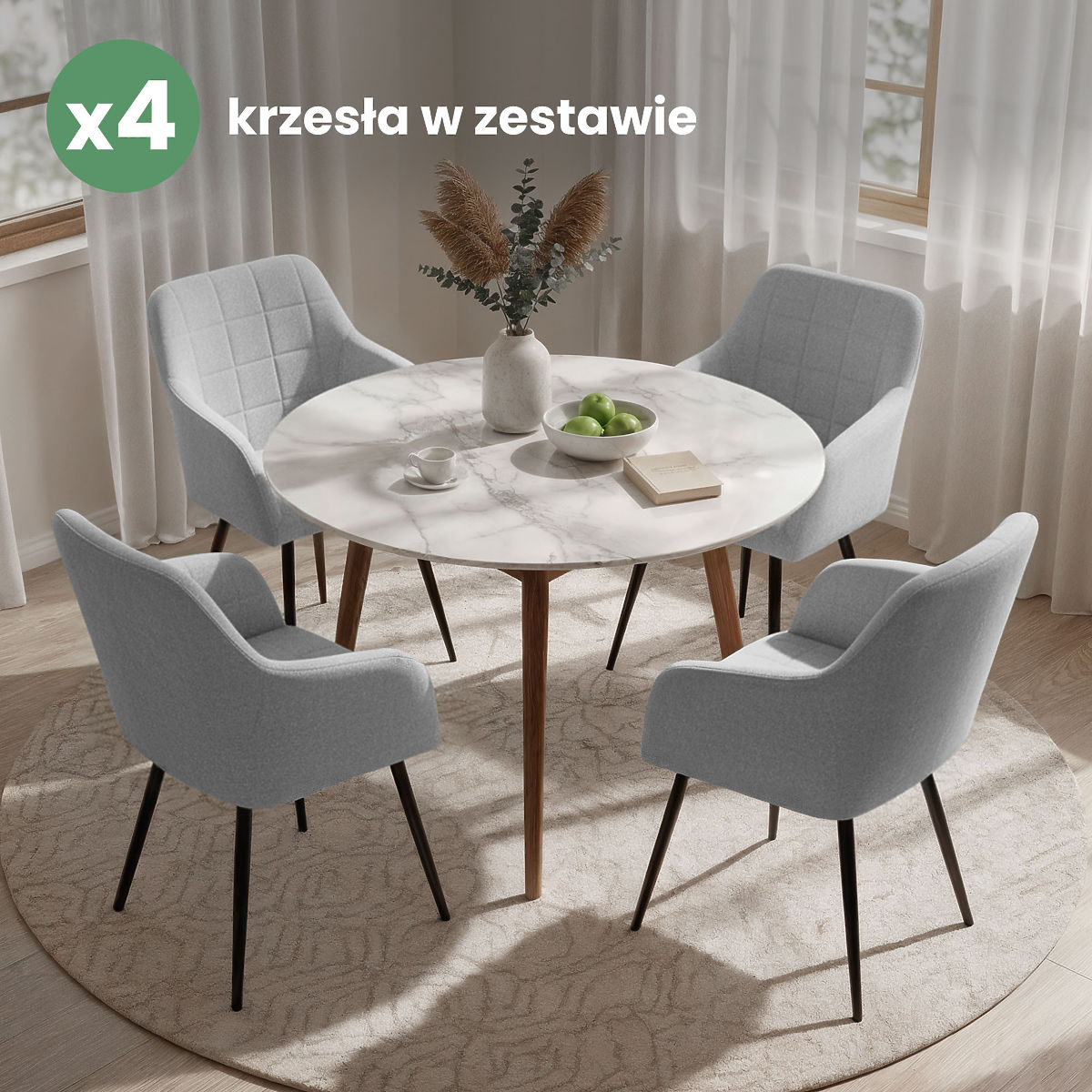 Banaby.eu » Furniture / Dining room / Dining chair / 4x Upholstered Chair with Square Quilting Light Gray LUXANO Black Legs Fabric Lumos