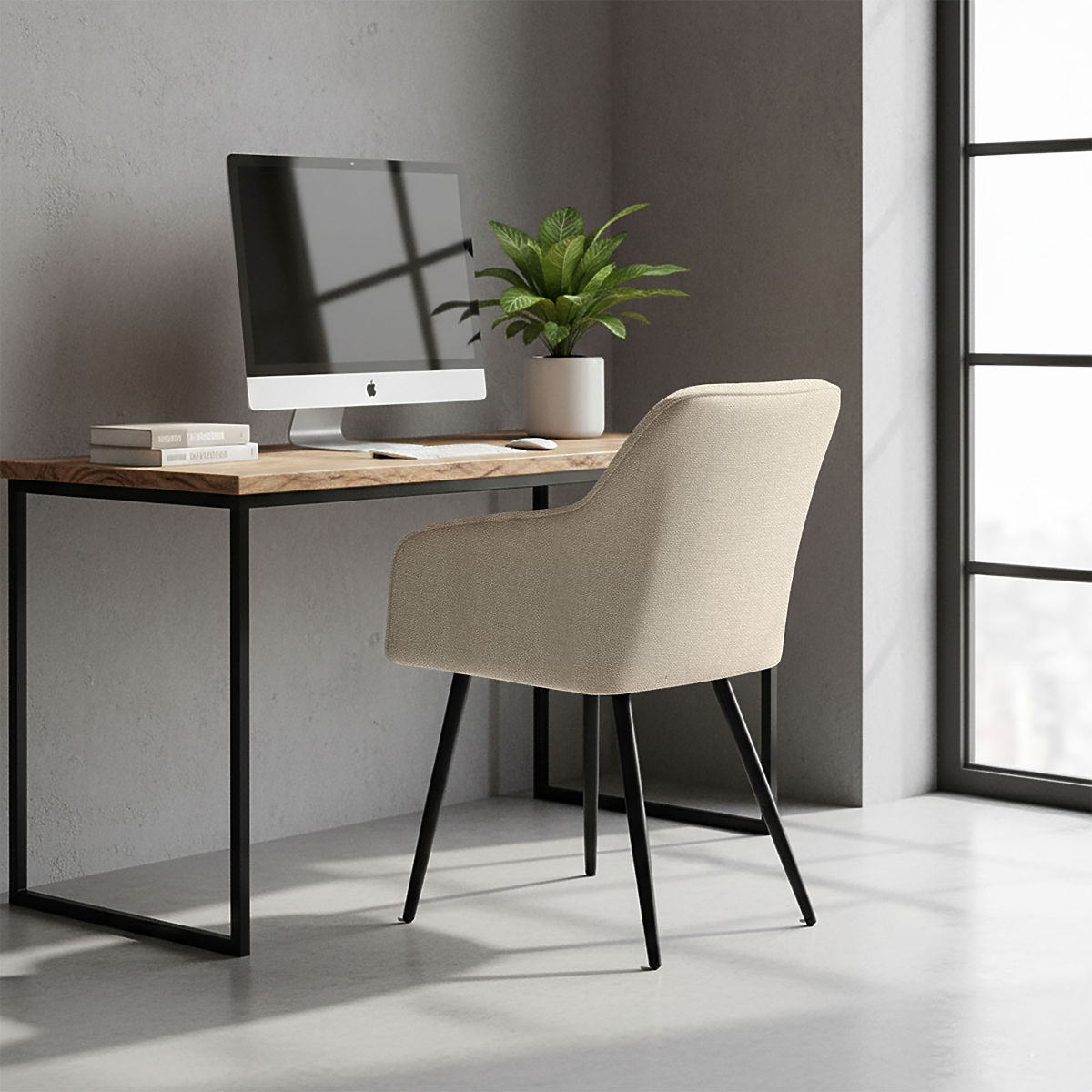Banaby.eu » Furniture / Dining room / Dining chair / 6x Upholstered Chair with Square Quilting Beige LUXANO Black Legs Lumos Fabric