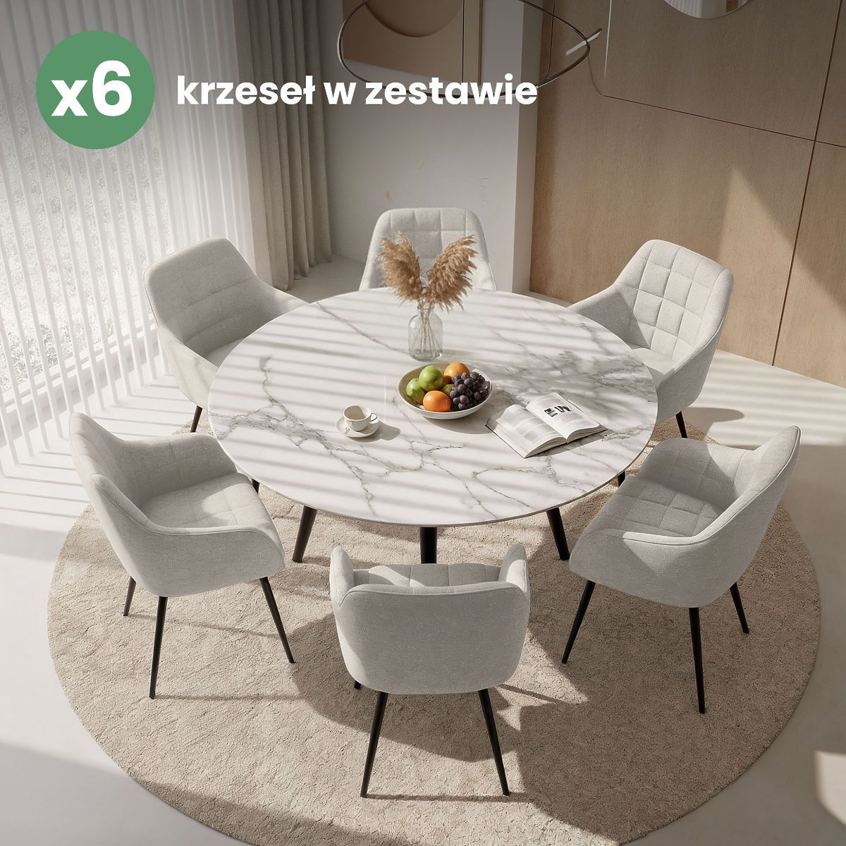 Banaby.eu   »   Furniture   /   Dining room   /   Dining chair   /   6x Upholstered Chair with Square Quilting Cream LUXANO Black Legs Lumos Fabric