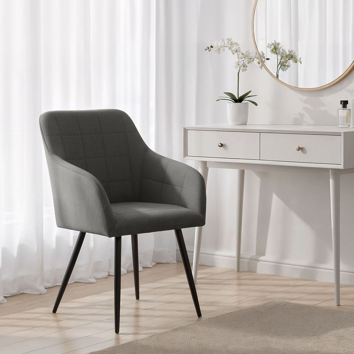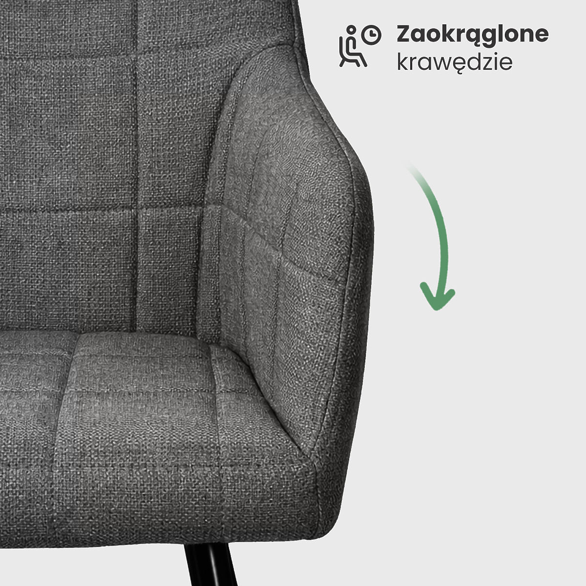 Banaby.eu » Furniture / Dining room / Dining chair / 6x Upholstered Chair with Square Stitching Dark Graphite LUXANO Black Legs Lumos Fabric