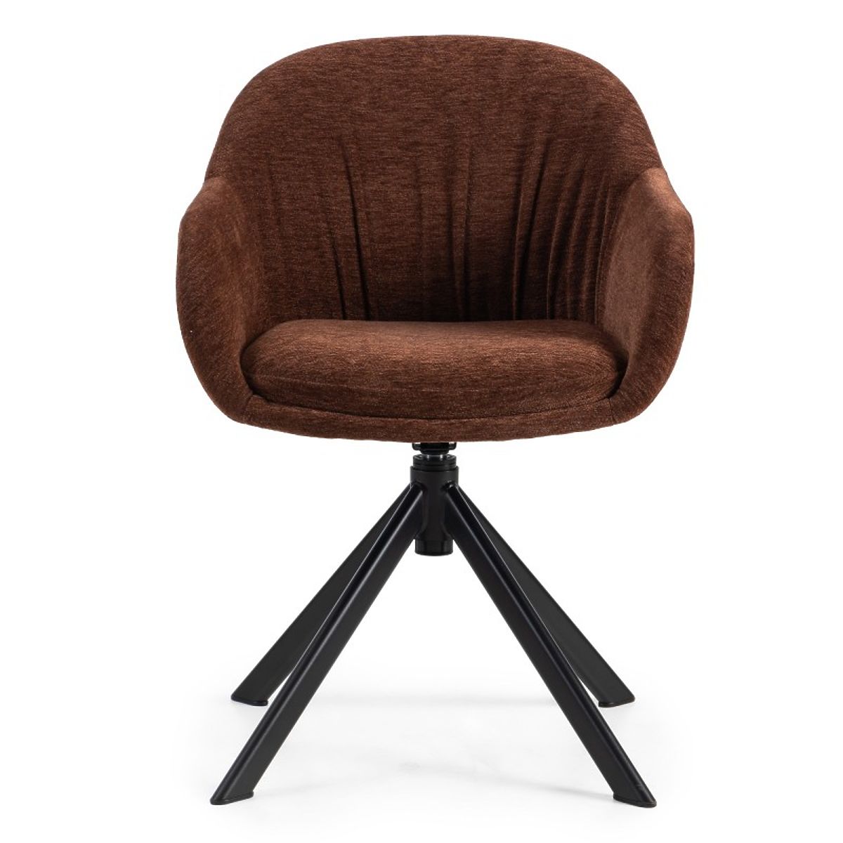 The KAIRO swivel chair combines modern elegance with exceptional comfort. Its soft brown-red upholstery, delicate pleating, and 360° rotation make it a perfect addition to a stylish interior.