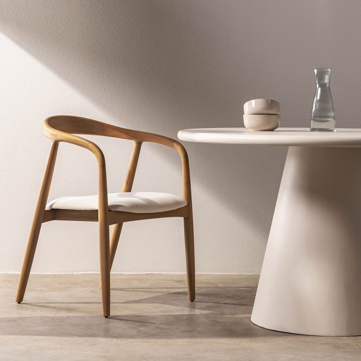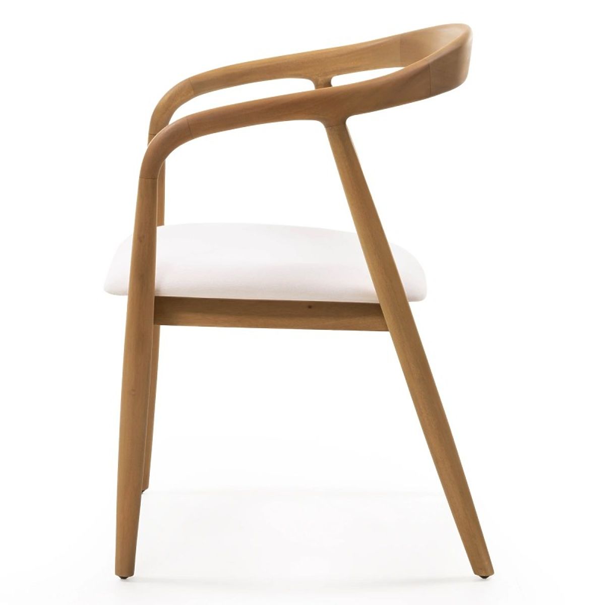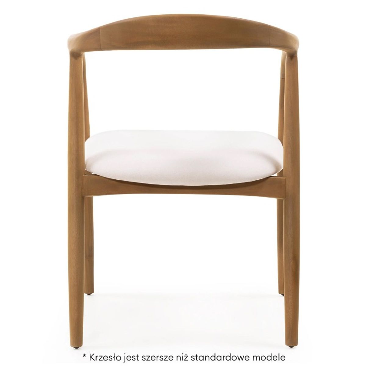 Rounded mahogany chair with a cream fabric seat. .. more