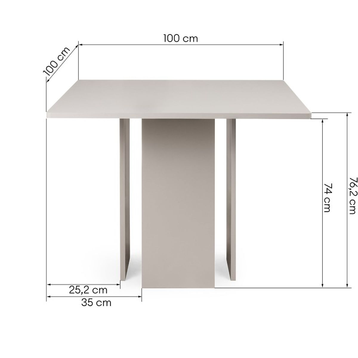 • Square tabletop 100 × 100 cm