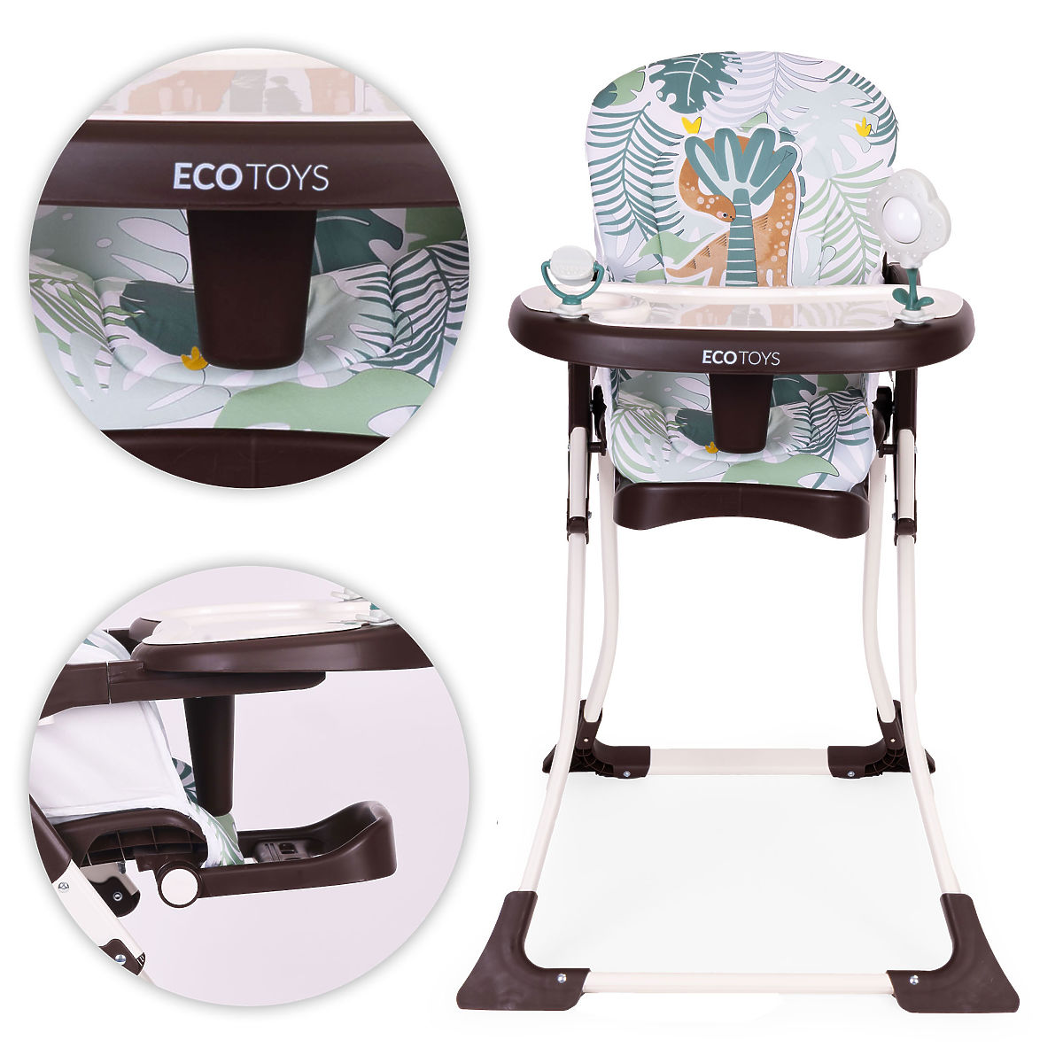 The high chair is an ideal choice for all parents and their children – from 6 months old. It facilitates dining together with adults at one table, allowing the child to observe, imitate, and learn proper behavior. Thanks to the wide tray, the child can not only eat but also play, stack blocks, or draw. Additionally, the tray features interactive toys that entertain the child and stimulate their senses. This way, the child will quickly grow fond of their new, exceptional furniture.