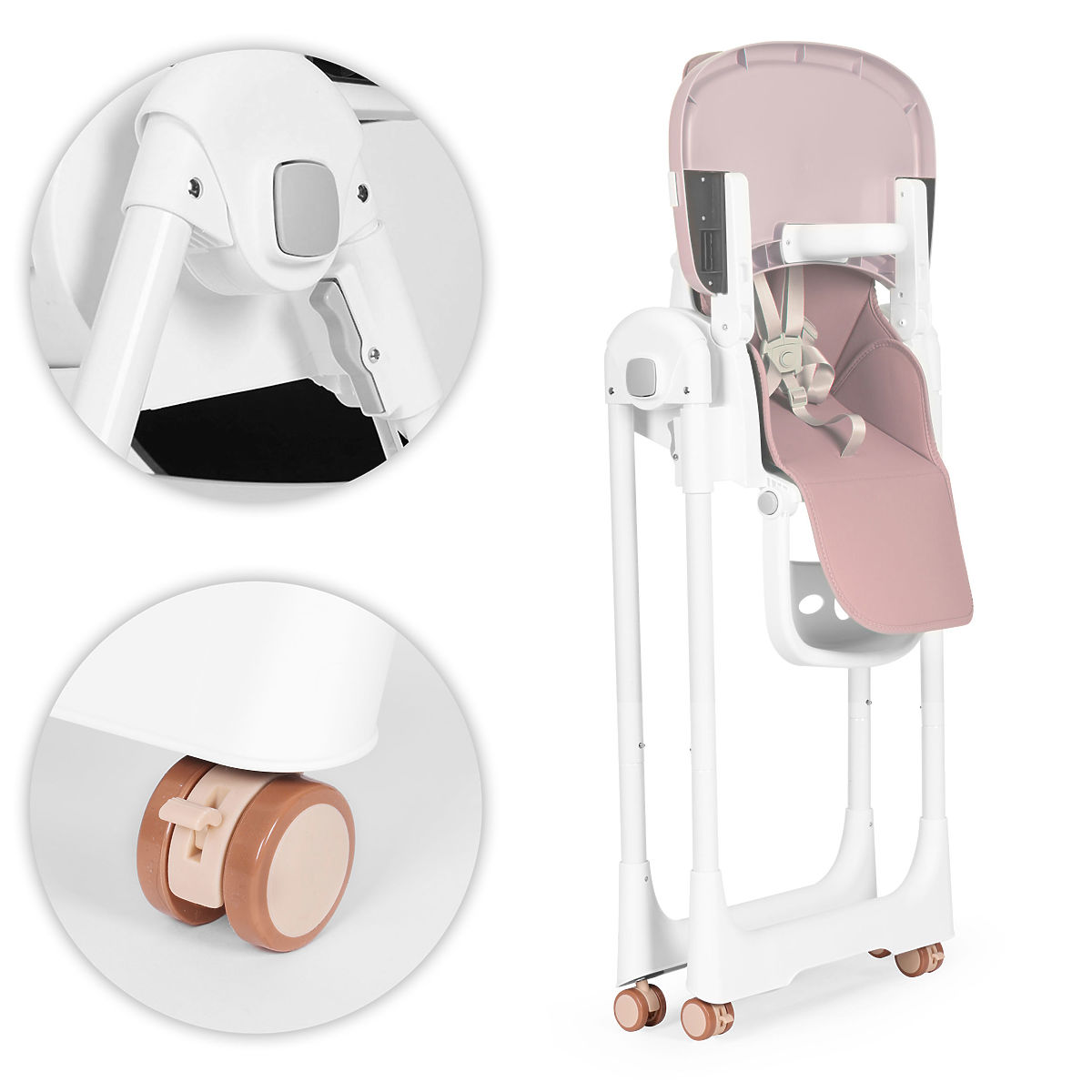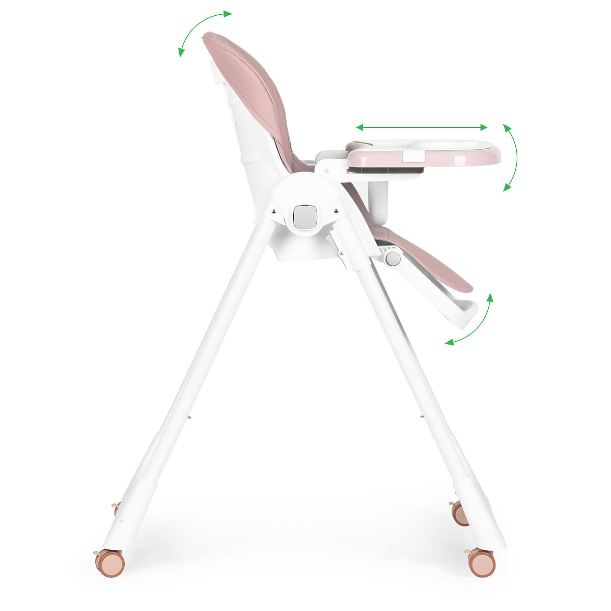 FULL ADJUSTABILITYThe thoughtful construction of the high chair allows adjustment of the most important elements, affecting the child's comfort and proper position. Thanks to this functionality, you can perfectly adapt the entire structure to the child's height and age, ensuring comfort and convenience, which this model provides, making your child quickly grow fond of their high chair and enjoy using it. You can adjust the backrest angle from upright to reclining, ideal for the youngest children. Under the seat, there is a functional footrest, whose position can also be adjusted to the child's height, allowing them to comfortably rest their feet, which positively affects comfort and a sense of security. The tray, which can be removed if necessary, also features distance and angle adjustment, allowing you to easily store the high chair by reducing its dimensions.