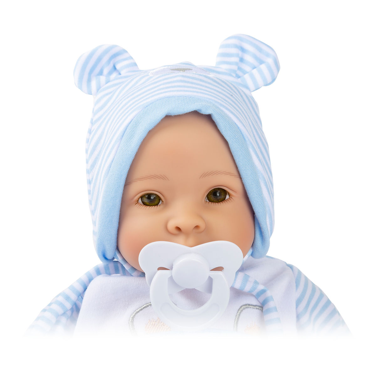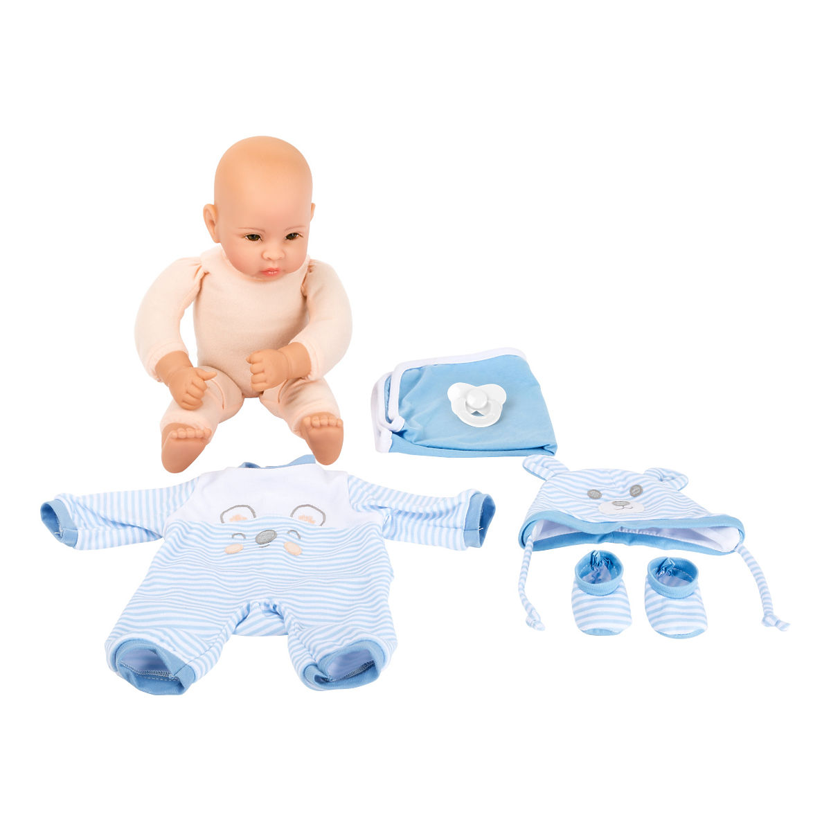 The Lucas doll features a soft fabric body with a plastic head and limbs, and comes with plenty of accessories. The doll's clothes are easy to put on and take off. The package includes a color-coordinated pacifier and blanket. It has an especially realistic facial expression with beautiful non-blinking eyes. Dolls with soft bodies are perfect for younger children whose motor skills are still developing. Playing with dolls encourages the development of imagination and social skills. A perfect companion for play and cuddling thanks to its soft body. Main features: soft fabric body, develops imagination and social skills, includes doll clothing.