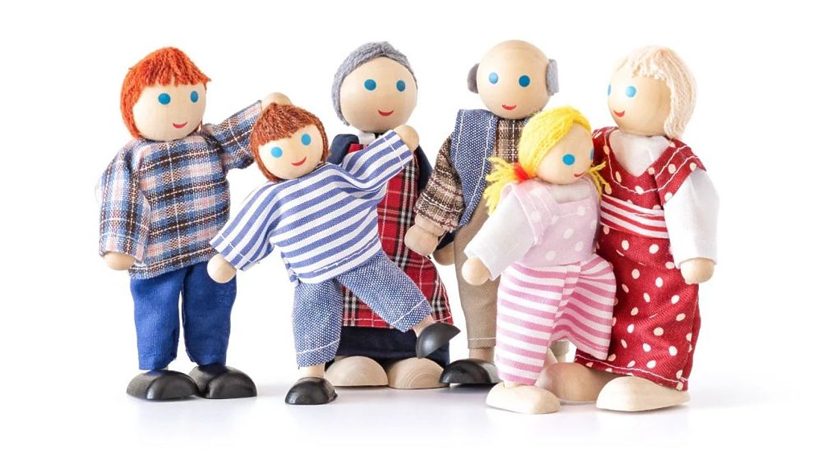 A fun, wooden puppet family is the perfect accessory for dollhouses and furniture sets.