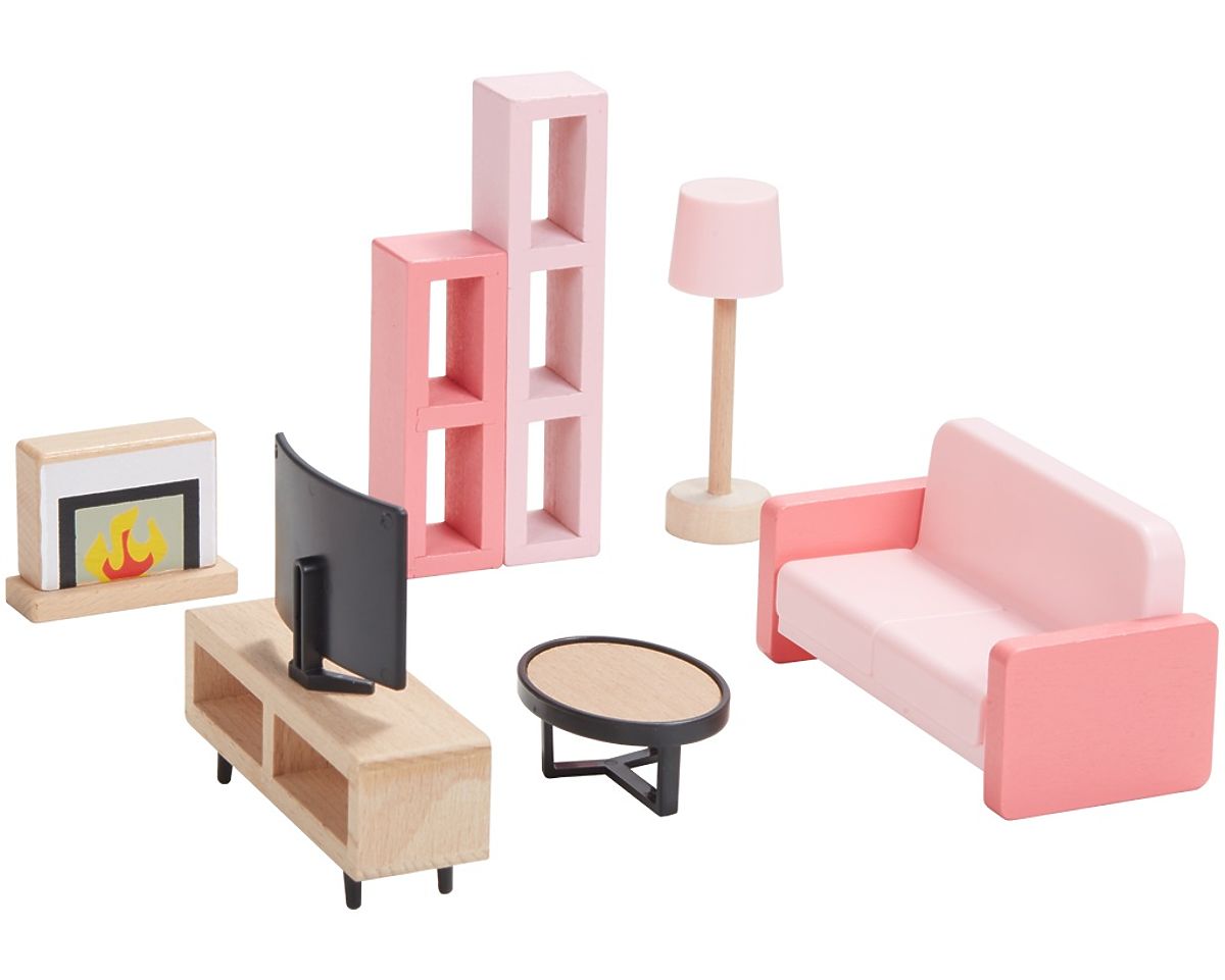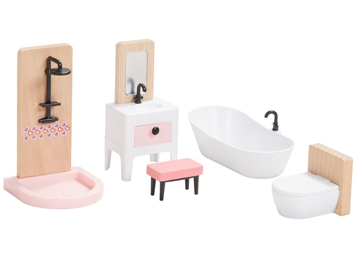 A great set of wooden furniture that allows you to furnish any dollhouse. 5-in-1, it includes a bedroom, kitchen, living room, children's room, bathroom, and even a whole family. Beautifully detailed wooden pieces help young imaginations create enchanting interior scenes over and over again. It consists of 36 pieces. No dollhouse is complete without this set! Main features: includes 36 pieces, suitable as a complete set for our little princesses' first dollhouse, trains communication skills and coordination, inspires creative and imaginative play.