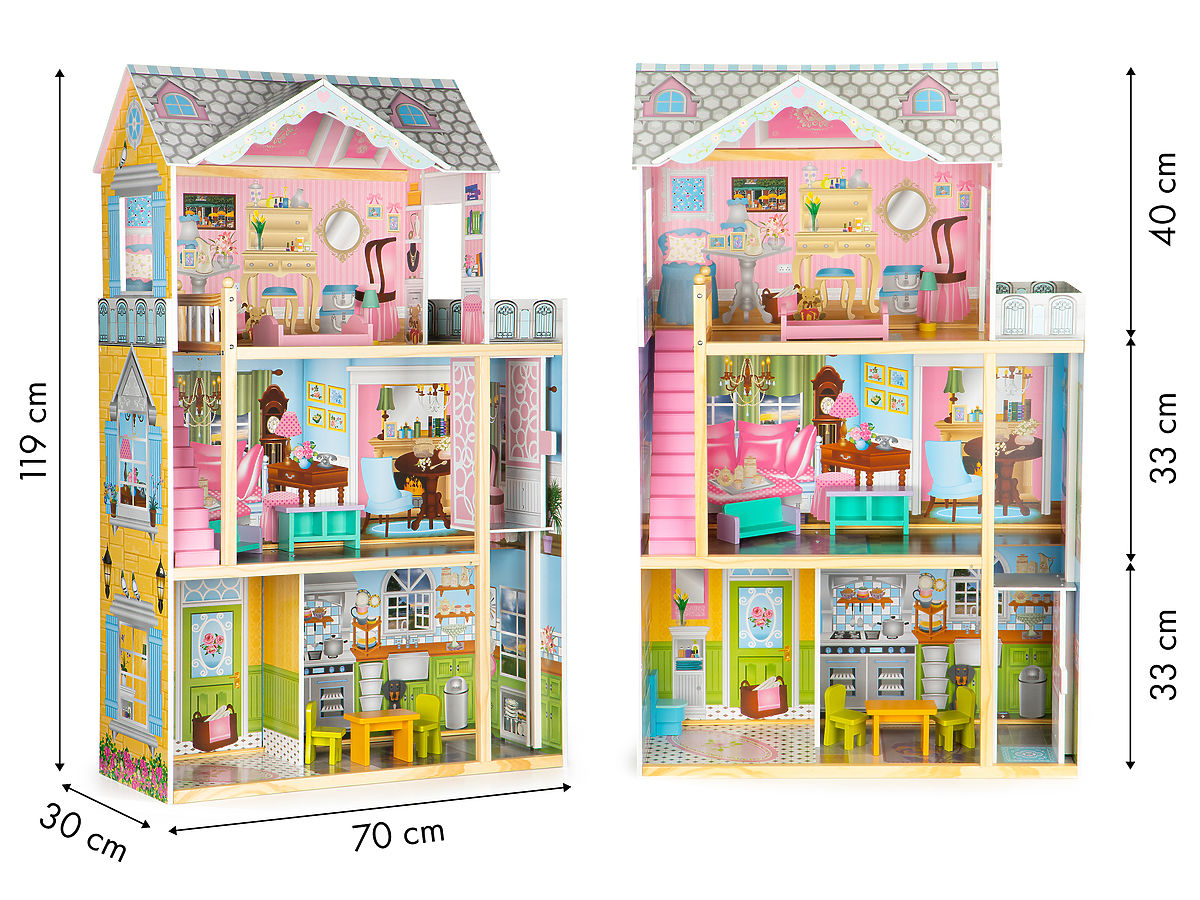 This beautiful wooden house Melissa will surely please every young lady. Four rooms, three floors, a moving elevator and wooden furniture guarantee hours of fun and enjoyment.