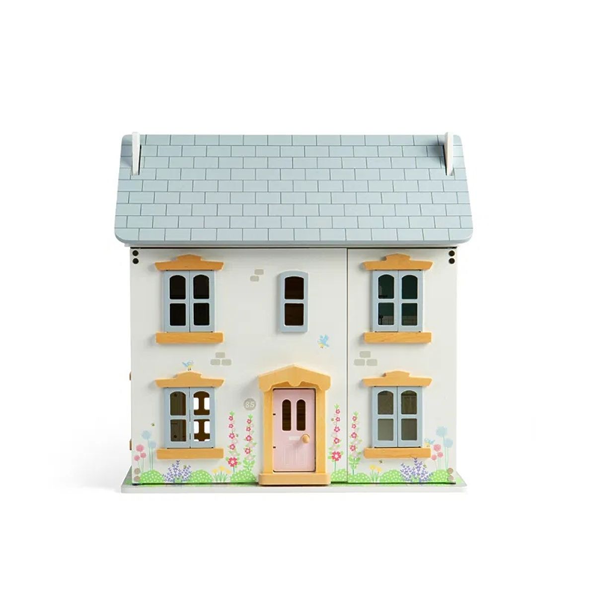 Welcome to the stylish summer dollhouse in a colorful design with soft pastel colors and plenty of flowers on the facade, bringing you the atmosphere of summer and relaxation. The house is full of characteristic Victorian elements such as bay windows, a high roof, and framed front doors in pastel pink. It offers plenty of space on the ground floor, where the kitchen and living room are located, on the first floor with two bedrooms, and in the attic. Two staircases rise from the ground floor to the first floor and from the first floor to the attic. The house features an opening front wall, attic space, windows, and entrance doors, and even doors from the living room to the garden. The house encourages imaginative play, supports children's dexterity, language skills, and emotional development. It is made from premium and sustainable FSC® certified wood and is finished with non-toxic paints and lacquers. It meets current European safety standards. Furniture and dolls are not included. Main features: 2 floors, 4 rooms, 2 staircases, and attic opening front wall, attic, windows, and doors encourages imaginative play improves language skills and emotional development enhances dexterity made from FSC® certified wood suitable for ages 3 and up The FSC® (Forest Stewardship Council) brand and certificate guarantee that the wood from which the product was made was not harvested illegally and comes from forests managed in an environmentally friendly or nature-close way, where strict environmental and social requirements are met. The FSC® label on the product means that by purchasing, you help protect forests and support sustainable, responsible, or nature-friendly management, making our forests more stable, healthier, with a natural species composition, and better able to withstand the negative effects of climate change.