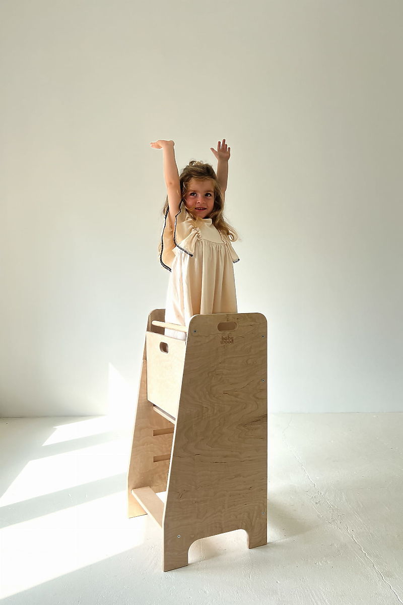 With the Kitchen Helper, a child can safely stand at the right height and learn new skills – from washing fruit to simple meal preparation under adult supervision. It's not just a step stool, but a space for shared moments, learning, and fun.