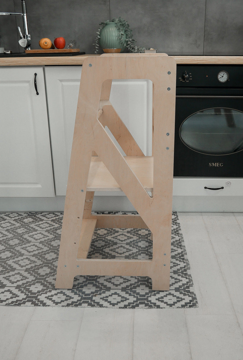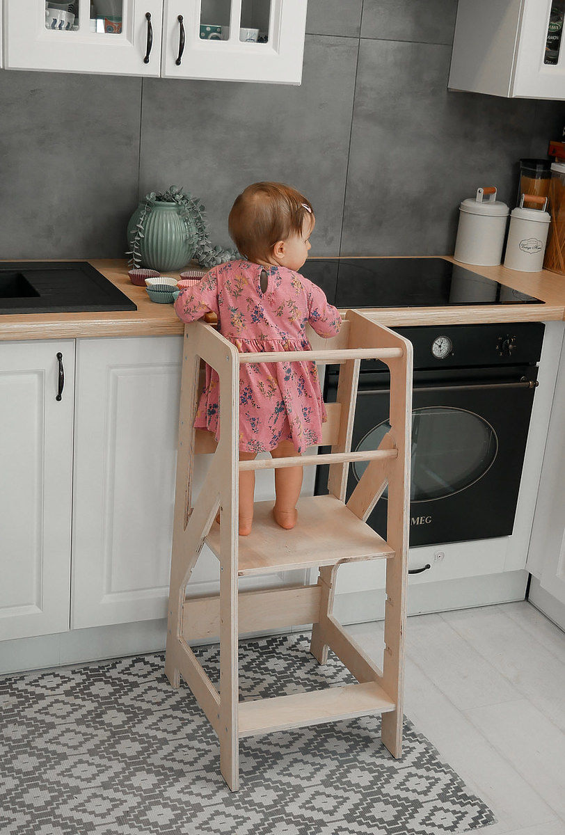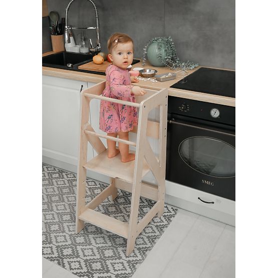 Children's montessori learning tower Pola MAXI 90 in a natural design is a reliable and practical helper that develops creativity, motor skills and also has a positive effect on the overall development and socialization of the child.