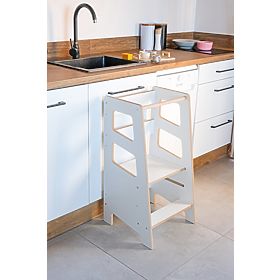 Children's montessori learning tower in white design with trapezoidal cutouts. It is a reliable and practical helper that develops creativity, motor skills and .. more
