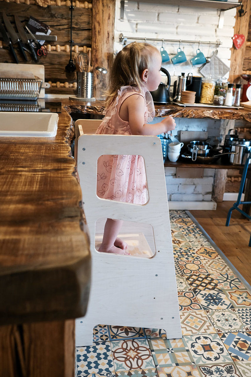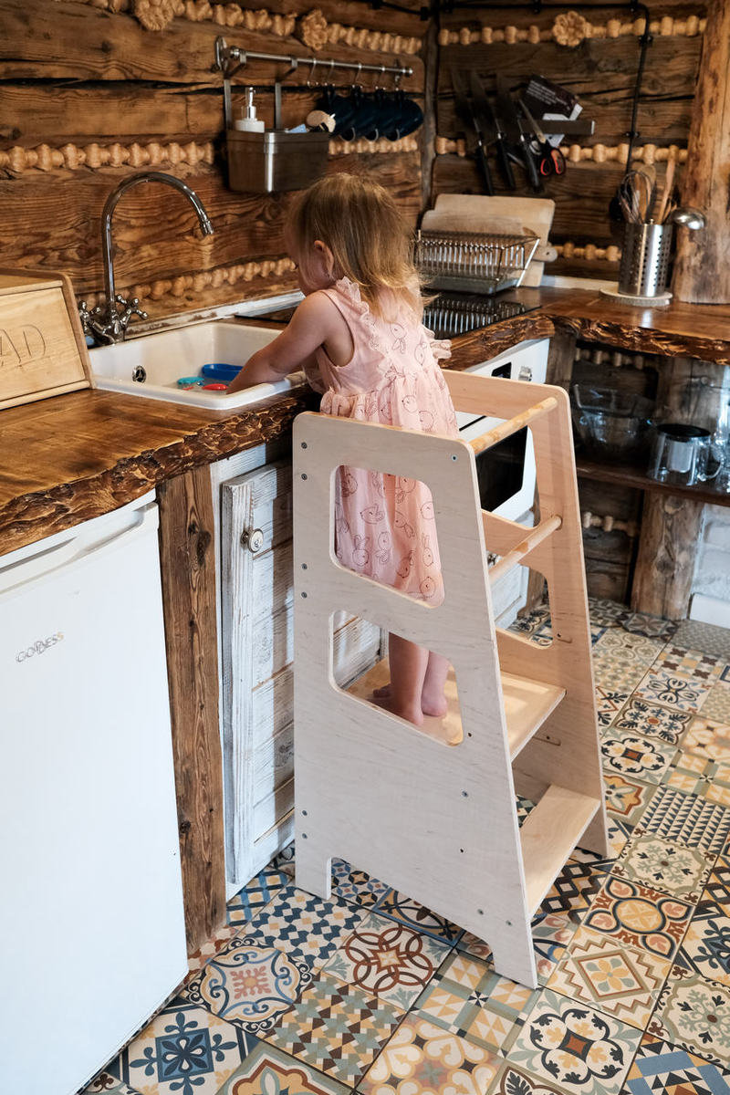 The children's montessori learning tower Hugo MAXI 90 is a reliable and practical helper that develops creativity, motor skills and also has a positive effect on the overall development and socialization of the child.