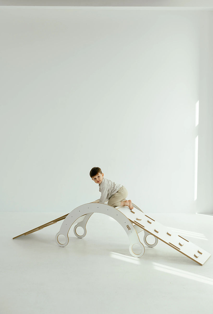 Thanks to the additional boards, the set offers even more play options. One side of the board is smooth and serves as a slide, while the other is equipped with rungs or climbing stones that motivate children to climb and discover new movement skills.