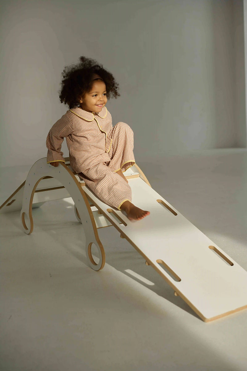 Montessori Climbing Set offers children a space for active movement and fun right at home. The combination of a wooden swing and climbing elements supports the natural development of motor skills, balance, and coordination. Thanks to its quality craftsmanship and timeless design, it is suitable for a child's room or playroom.