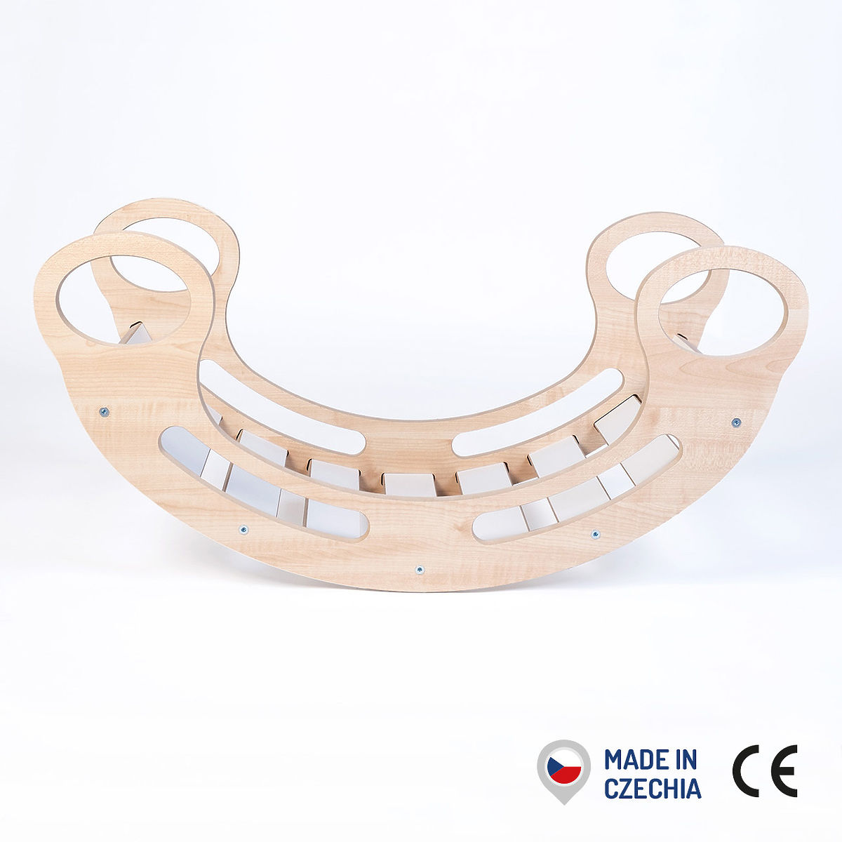 The swing supports motor development of the child, proper posture and balance, and stimulates children's imagination. The cutouts on the sides allow the child to hold on while playing.