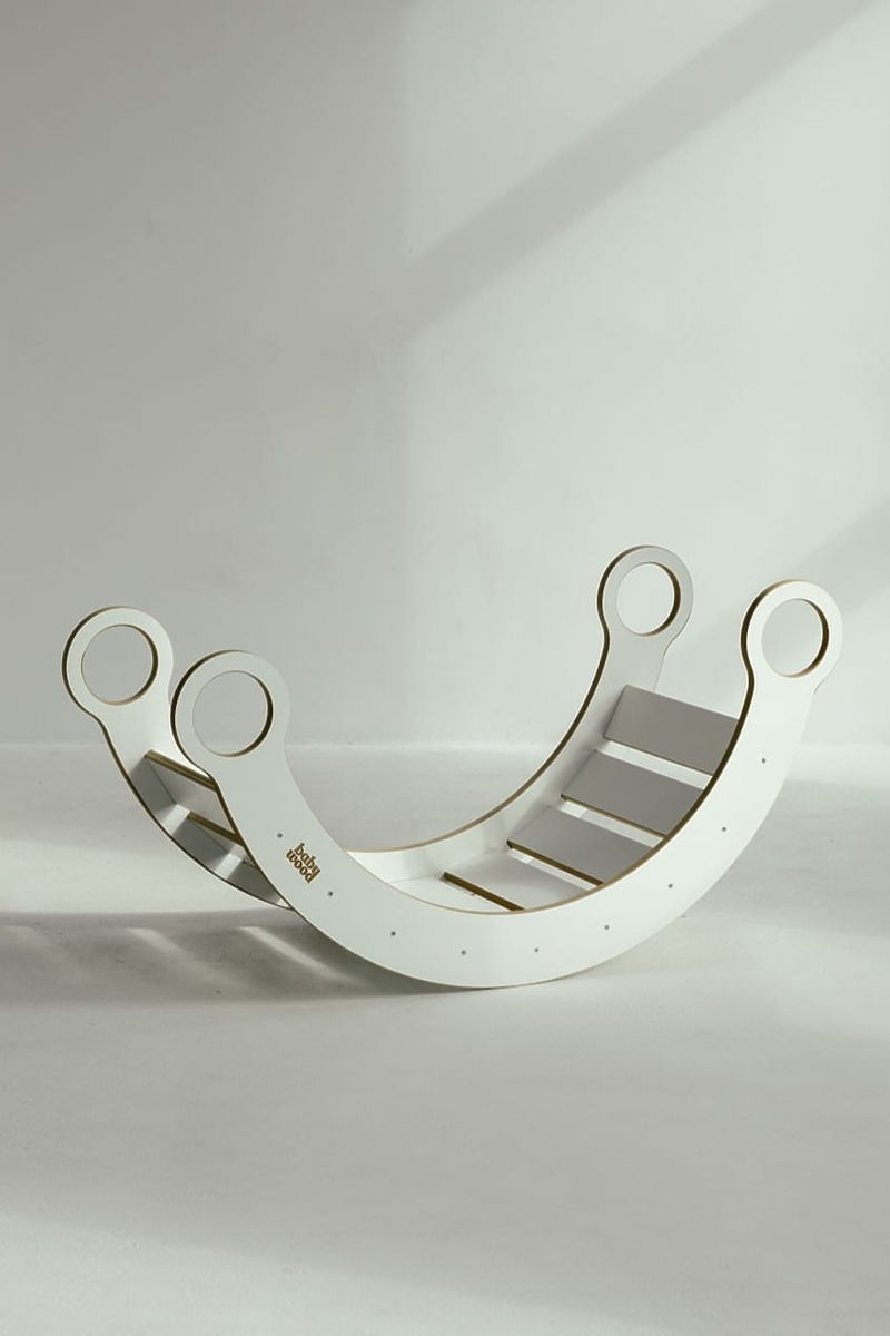 Banaby.eu » Montessori / Montessori rockers / Wooden Montessori Swing with Slide/Climbing Wall L - White