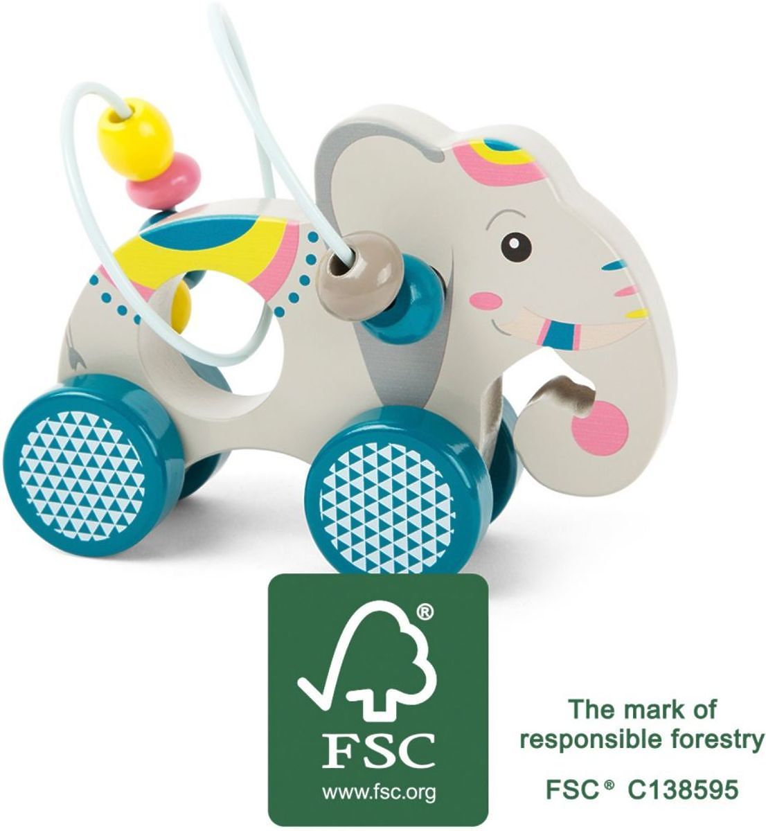 A wooden educational toy develops children's skills in a fun way. The motor labyrinth exercises the child's fine motor skills and skill through the game. The child can move the beads from one end of the labyrinth to the other through the hole in the elephant. Great fun is guaranteed!