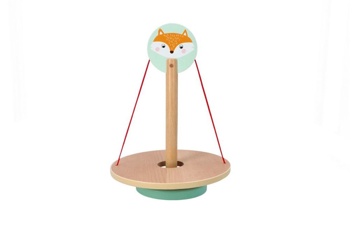 The principle of the game is to place all your pieces on a wooden plinth. The pedestal is suspended by a string and wobbles slightly during the game, making the task even more difficult.