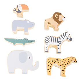 A tower of safari animals? This is not uncommon in balance folding toys! You can stack the seven animal figures on top of each other as you like, but be careful that your tower doesn't collapse! The game requires not only patience and concentration, but also a steady hand and dexterity. Children can also play with the figures independently. Main features: Modern pastel colors Contains 7 parts