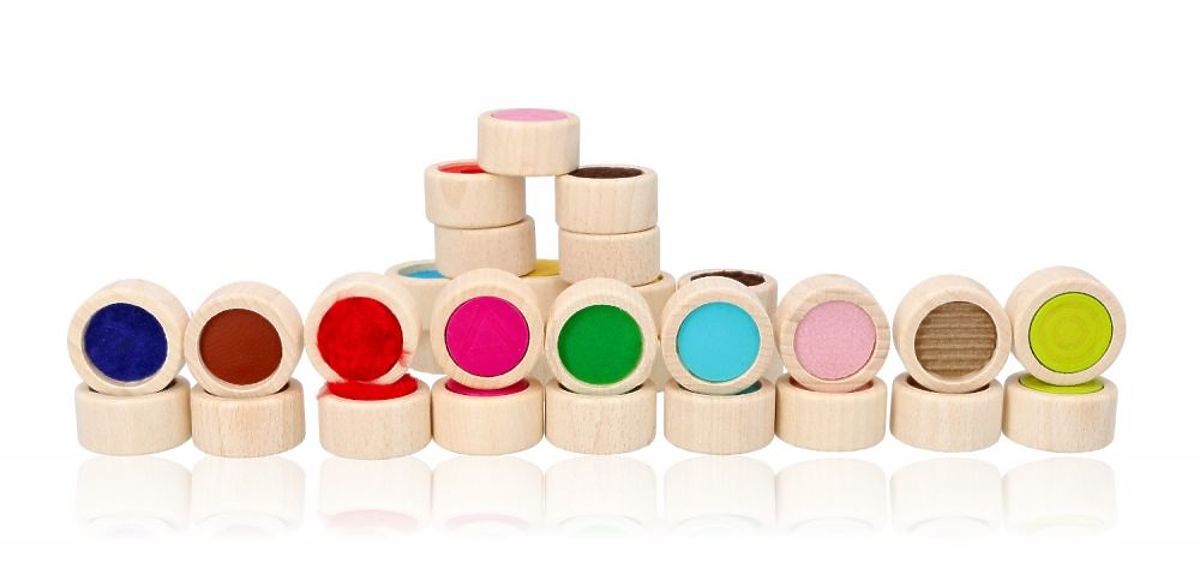 The set can also be used as a tool for shape matching. Everything is packed in a nice box.