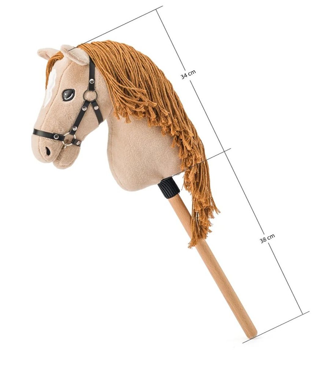 Introducing a brown stick horse with captivating beauty. Her name is Gracja, and as befits a mare with this name, she is characterized by grace and elegance. Our hobby horse in beige-honey color is carefully made from soft plush, making it pleasant to the touch. It has exceptional details, such as realistically crafted eyes and nose, which give it character. Additionally, it features removable tack and a lush string mane, adding authenticity. The handle is made from a solid piece of wood, significantly extending the product's lifespan and quality.