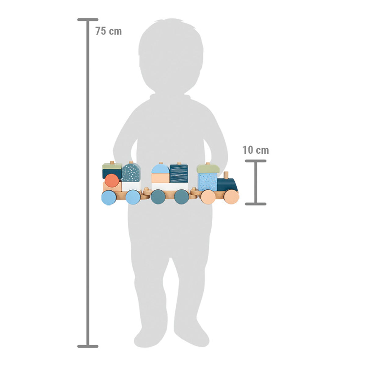 Damaged packaging. New goods without defects. Next stop: the North Pole! This train, made from 100% FSC® certified wood in soft colors and with Arctic patterns, embarks on a grand journey through the children's room. Thanks to its rubberized wheels, it travels quietly. This intricately designed train, which is both a plug-in and stacking toy, offers children the opportunity to assemble it according to their own ideas. The plug-in blocks can also be used separately as building blocks. With its modern design in soft Arctic colors and a high content of visible wood, the train also serves as a decorative ornament for the children's room. Playing and assembling the individual plug-in elements trains children's motor skills. Main features: 100% FSC® certified wood in an Arctic look, 2 in 1 thanks to plug-in elements, can also be used as a plug-in and stacking game, for training hand-eye coordination and motor skills, decorative ornament for the children's room, rubberized wheels, can ideally be complemented with other toys from the "Arctic" product line. The FSC® brand and certificate (Forest Stewardship Council) guarantee that the wood from which the product was made was not illegally harvested and comes from forests managed in an environmentally friendly or nature-friendly manner, where strict environmental and social requirements are met. The FSC® label on the product means that by purchasing it, you help protect forests and support sustainable, responsible, or nature-friendly management, making our forests more stable, healthier, with a natural species composition, and better able to withstand the negative impacts of climate change.