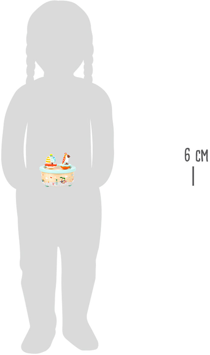 As the day comes to an end, these adorable animals cheerfully spin on their colorful base to the soothing melody of "Wonderful World." When the song ends, it's time to sleep! The elephant and parrot are securely held on top of the wooden wind-up music box with magnets (they can be easily detached, allowing children to play with them on a table or the floor). A truly magical bedtime aid for the nightstand in a child's room or a charming decoration for a nursery. It encourages creative and imaginative play. Main features: easy operation, supports imagination, magnetic and wind-up function, plays the melody "Wonderful World"