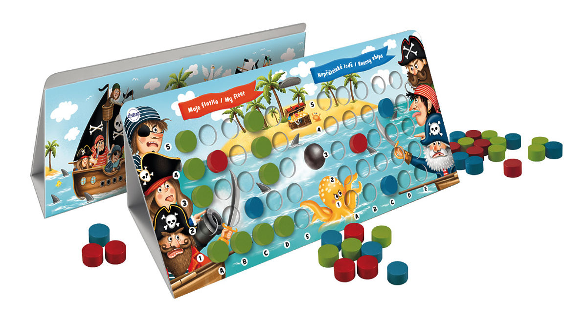 An original family game for children and adults. This naval battle is an epic strategic game for two to six players, bringing adventure and tactics to your table. In this pirate naval battle, your task is to destroy the enemy fleet before all your ships are sunk. As a captain, you must prepare your battle strategy and lead your sailors to victory! Deploy your fleet, plan your attack, and let the battle begin. This game is not only visually captivating but also offers a great gaming experience. The product meets EU toy safety requirements and is suitable for children aged 5 and up. The game includes: 2 cardboard game boards, a total of 144 pieces. Main features: number of players: 2 - 6, game duration: 20 - 40 minutes, product meets EU toy safety requirements, suitable for children aged 5 and up.
