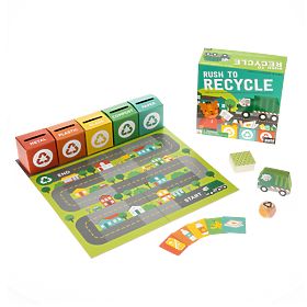 Recycling has never been as fun as with this award-winning game. Metal, glass, or paper? Sort them before the truck arrives! Play together or against each other and develop children's ecological awareness. The game is suitable for children aged 4 to 8 and typically takes about 15 minutes to play. It is made from recycled materials printed with non-toxic vegetable inks. Main features: game board, 5 containers, cards, dice, and a truck. Toy Awards: National Parenting Product Award 2021, PureWow's Happy Kid Award 2021, Oppenheim Toy Portfolio Gold Seal Award 2021, Made for Mums Bronze Award 2021.