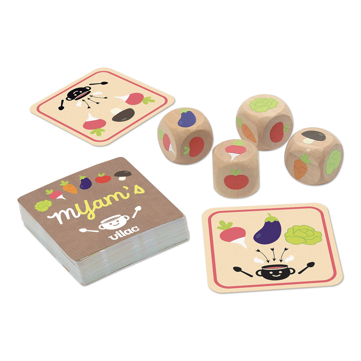 Not only vegans will enjoy this fun vegetable game! Draw a recipe card and try to roll the depicted combination on the dice. Who will be luckier and collect .. more