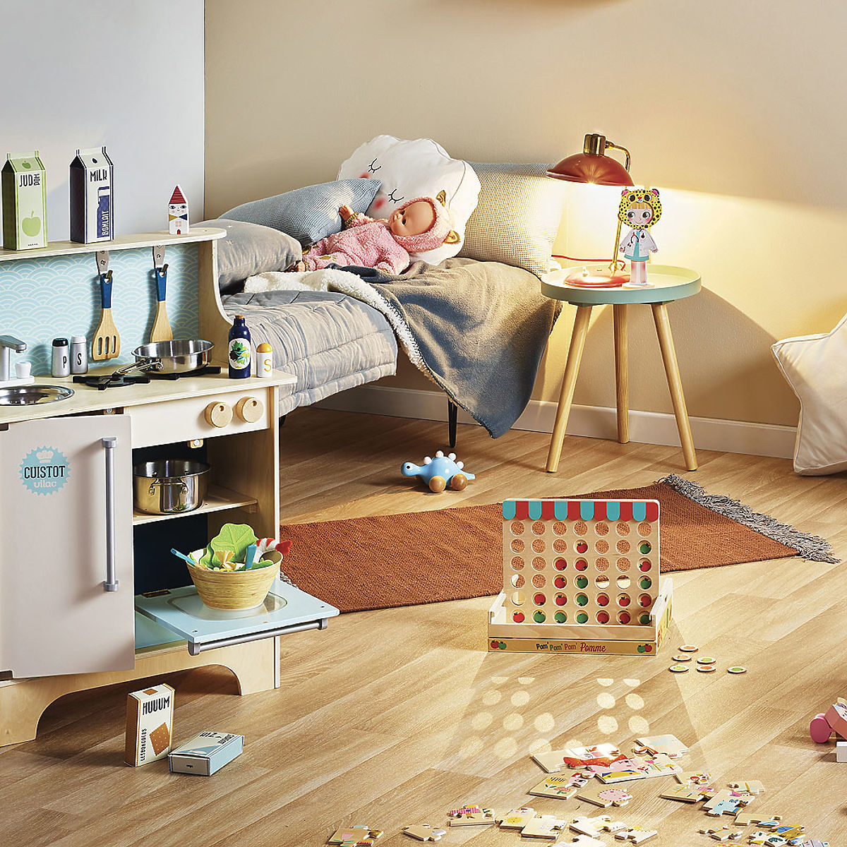 Wooden tic-tac-toe with red and green apples. You can play it at home or on the go. Can you win? Just create a consecutive line of 4 apples of the same color in a row. Suitable for ages 5 and up. Main features: practical for travel design by Ingela P. Arrhenius for two players. Short game instructions: The goal of the game is to create a consecutive line (horizontal, vertical, or diagonal) of at least 4 stones in the player's color. Players take turns, dropping game pieces into a column of their choice. If the column is empty, the piece falls all the way down. If there is already a piece in the column, the newly dropped one falls on top of it. If the column is full, no more pieces can be dropped. Once you drop a piece into a column, it is considered played – you cannot remove it from the column. The player who first creates a line of 4 stones in their color wins. Swedish artist Ingela Peterson Arrhenius was born in 1967. Art and design have always been a part of her life, and before her career as an illustrator began, Ingela worked as an art director in Stockholm. She then studied advertising and graphic design at an art school also in Stockholm. In 1992, she started her freelance illustration business and worked internationally across advertising, design, publishing... In the past, she created print patterns for fabrics, wallpapers, stationery, and also worked on packaging, product design, home accessories, and toys. Her posters and designer toys can be found worldwide. She has a passion for retro style, which is clearly visible in her works and also in her enthusiasm for typography and colors. She now lives in Stockholm with her husband and two sons.