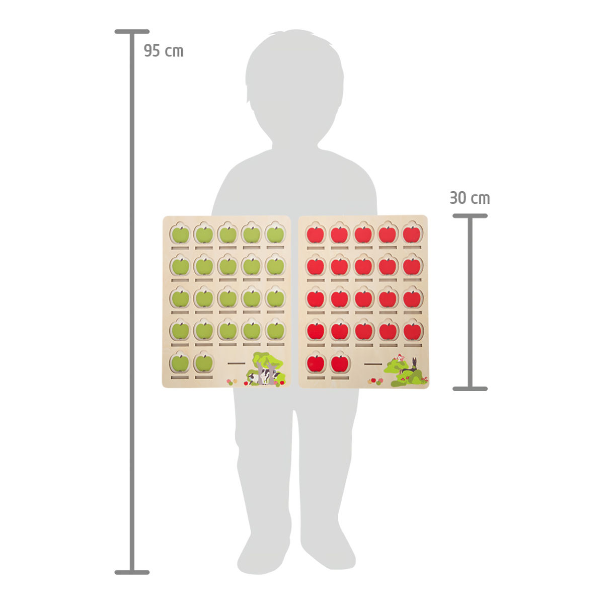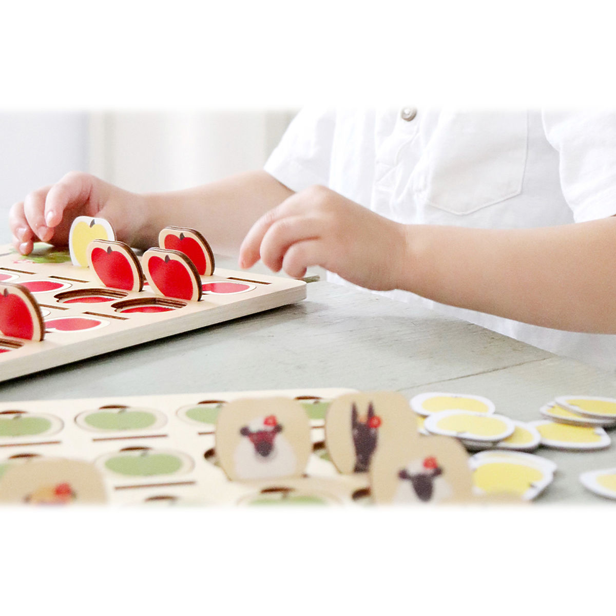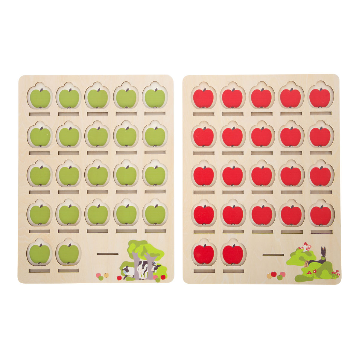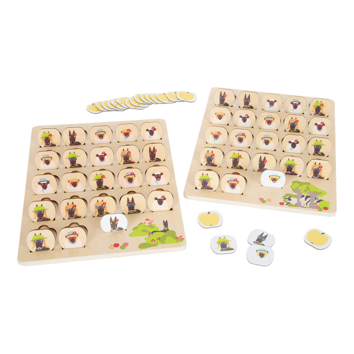 Who took the apples? With this game, the whole family can guess, and you'll need good observation skills to quickly identify the "4 friends" character. The classic game is made from sturdy wood and features a child-friendly design. The package includes 2 game boards on which you arrange illustrated pieces, and 22 cardboard character cards. 2 in 1, it can also be played as a memory game. Stored in a quality box. Cow Olga and rooster Heinz are trying to find out who stole the apples from the meadow, but the suspects are well hidden! The game is suitable for introducing the world of similarities and differences. This board game has very simple rules and is suitable for people of all ages. It helps develop combination skills and trains concentration. Main features: popular game with simple rules made from sturdy wood, two game boards, 22 cardboard cards, 2 in 1, can also be used as a memory game, quality storage box, supports the development of combination skills and trains concentration, compatible with other "4 friends" games.