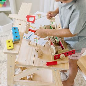 A huge workshop and construction set in one guarantees hours of fun for all little builders. This educational toy encourages the child to do manual work, develops fine motor skills and children's imagination. You will have a lot of fun just putting the workshop together. Once the table is assembled, you can play with the workshop in many different ways. The individual elements can be screwed to the table and can be used to build fantastic constructions.