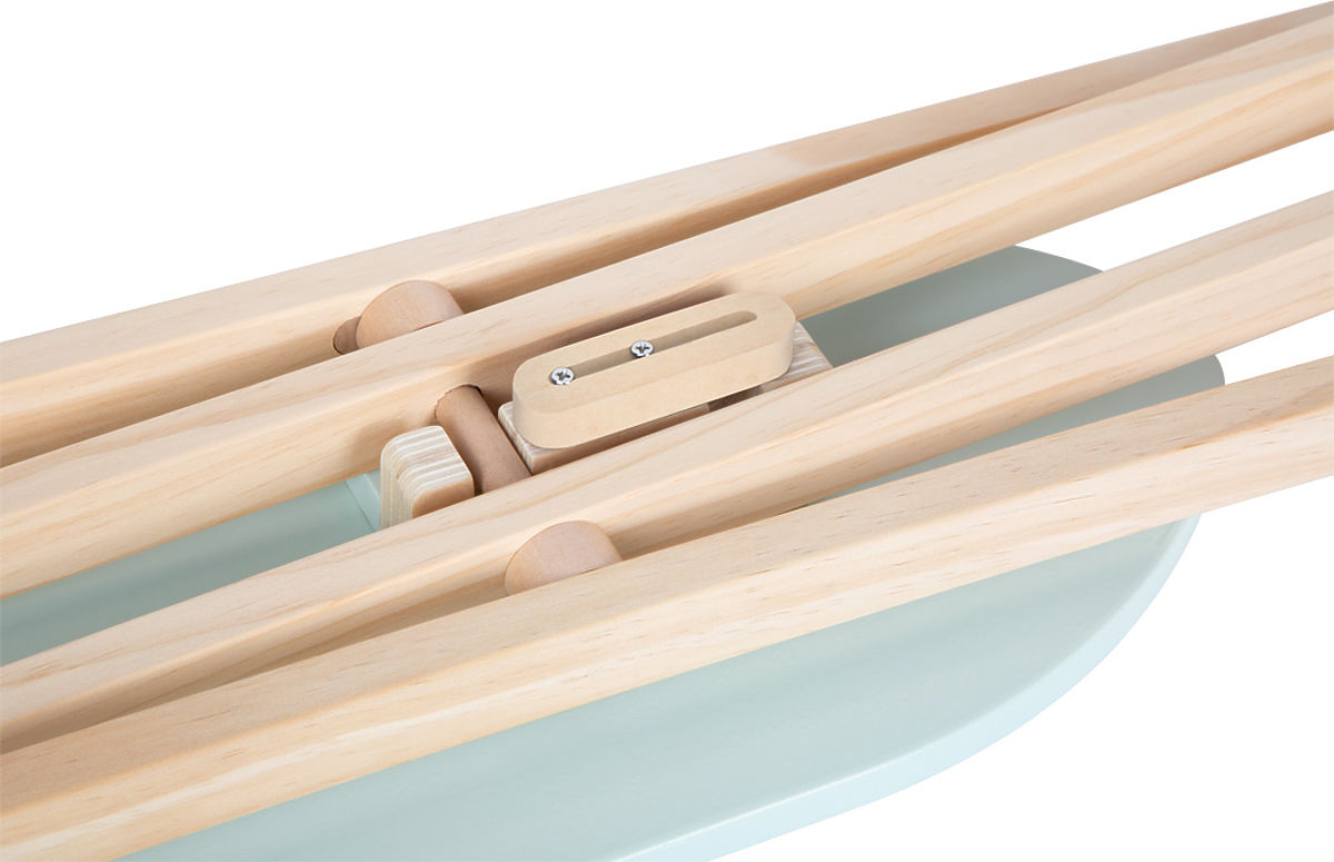 The children's ironing board with iron is a great way to combine fun with learning, foster creativity, and prepare children for the basics of household chores. It is specially designed for safe use by children. The control knob on the iron provides extra realistic fun. The iron can be placed on the resting area. The board can be assembled at two different heights, allowing it to be adjusted to the child's height. After playtime, the ironing board can be folded back together and stored to save space. The integrated safety bar prevents the ironing board from separating and unfolding. The ironing board is a great addition to any child's room, allowing the youngest children to mimic their parents during active role play. The stable position of the board is ensured by rubber. Compact dimensions are suitable for children's hands. The ironing board and iron are made from safe and durable materials to provide a safe and fun environment for play. Children can play with friends or parents, promoting social interaction and cooperation. Main features: modern design, encourages imagination, ability to imitate adult activities, supports fine motor skills and hand-eye coordination, safe materials ensure safe play