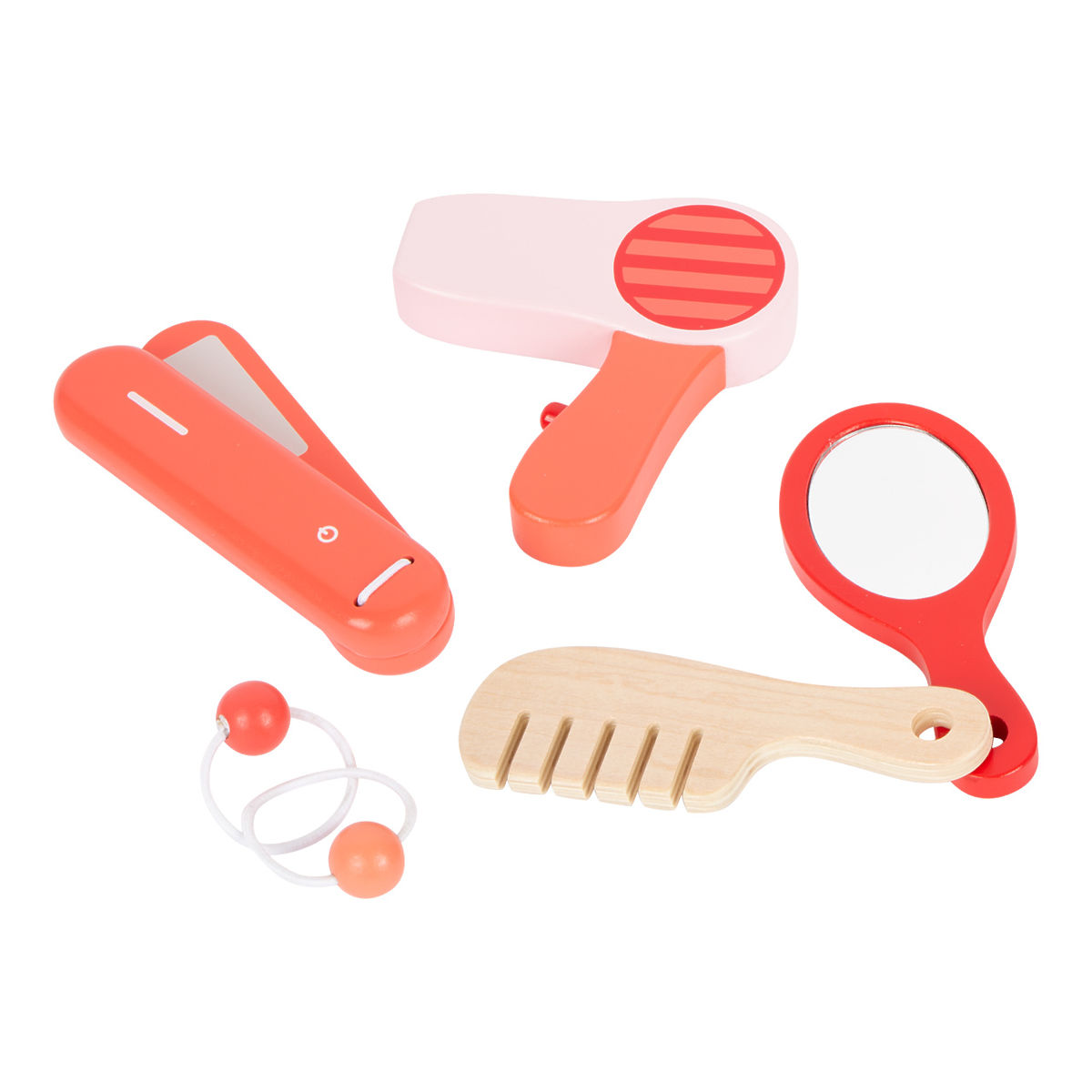 Make-up artists, this is for you! The cosmetic suitcase made of wood is perfect for role-playing. The comprehensive set consists of a comb, mirror, hairdryer, lipstick, powder, eyeshadow, hair straightener, and hair ties. Finally, you can put on makeup like mom! The suitcase has a lock, and all the accessories fit comfortably inside. Who will get their hair done first? Main features: 10 different cosmetic tools, practical packaging