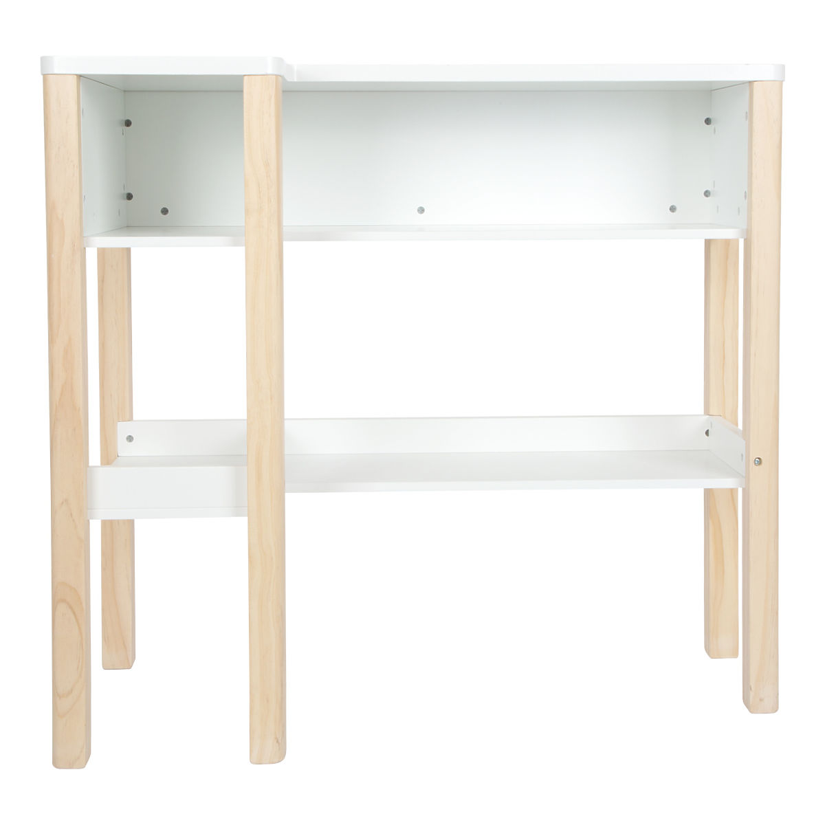 A compact, modularly designed shop with a removable fabric awning, which can be flexibly integrated into a child's room. Thanks to the combination of neutral white and natural wood, it fits beautifully into any child's room. Includes a writable board with a shelf for chalk. The fabric awning gives it a typical shop appearance. The rounded edges of the counter provide additional safety. Accessories not included. Main features: modern and simple Nordic design, develops children's communication and social skills, parts can be pushed together after play, suitable for other toys from the Fresh product line