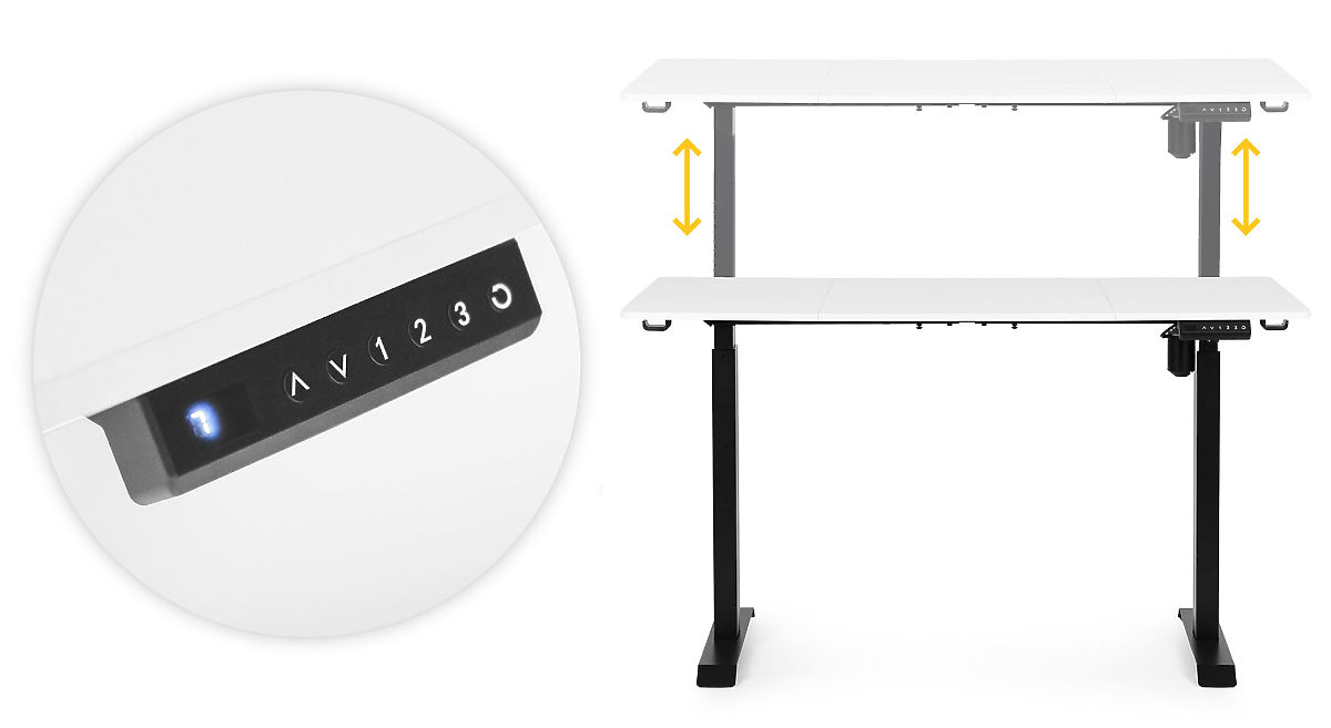 FULL CONTROL AT YOUR FINGERTIPSAn intuitive control panel with up/down buttons allows you to precisely adjust the height of the desk, and three numeric buttons allow you to save favorite positions. Additionally, you can set a reminder for position change every 30, 45, or 60 minutes, promoting healthy work habits.
