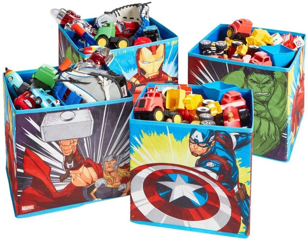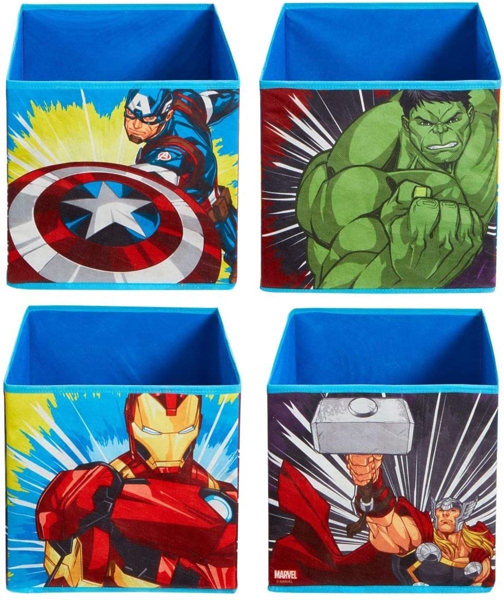 Four colorful, universal storage boxes with the Avengers motif will be a practical addition to any boy's room.