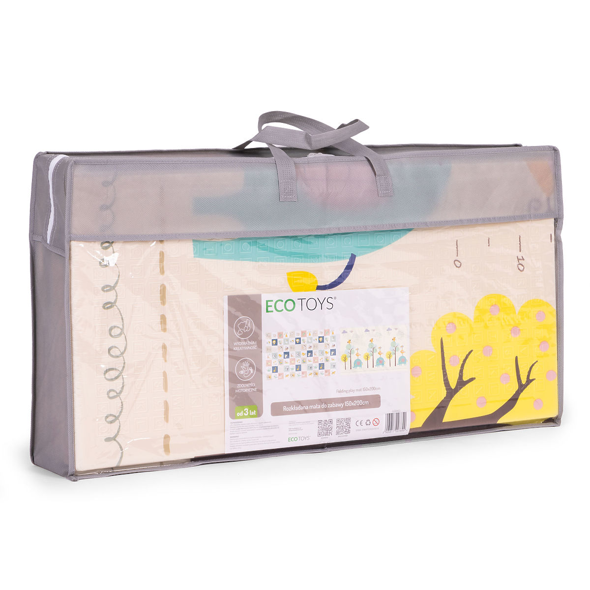 PRACTICAL FOR EVERYDAY USE AND TRAVELThe foldable design of the mat is the perfect solution for parents who value convenience and mobility every day. Thanks to its thoughtful form, it can be folded in a few moments and then placed in a practical carrying bag. You can easily move it to another room, take it on a trip, or unfold it in the garden. This functionality allows the child to play in their favorite place regardless of the circumstances, and after playtime – quickly and conveniently organize the space.