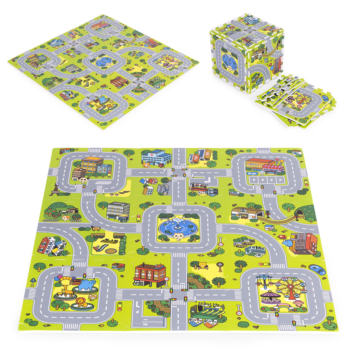 Banaby.eu » Everything for infants / Playmats and gyms / Large EVA Foam Mat for Children City 90.5x90.5 cm 21 pcs ECOTOYS