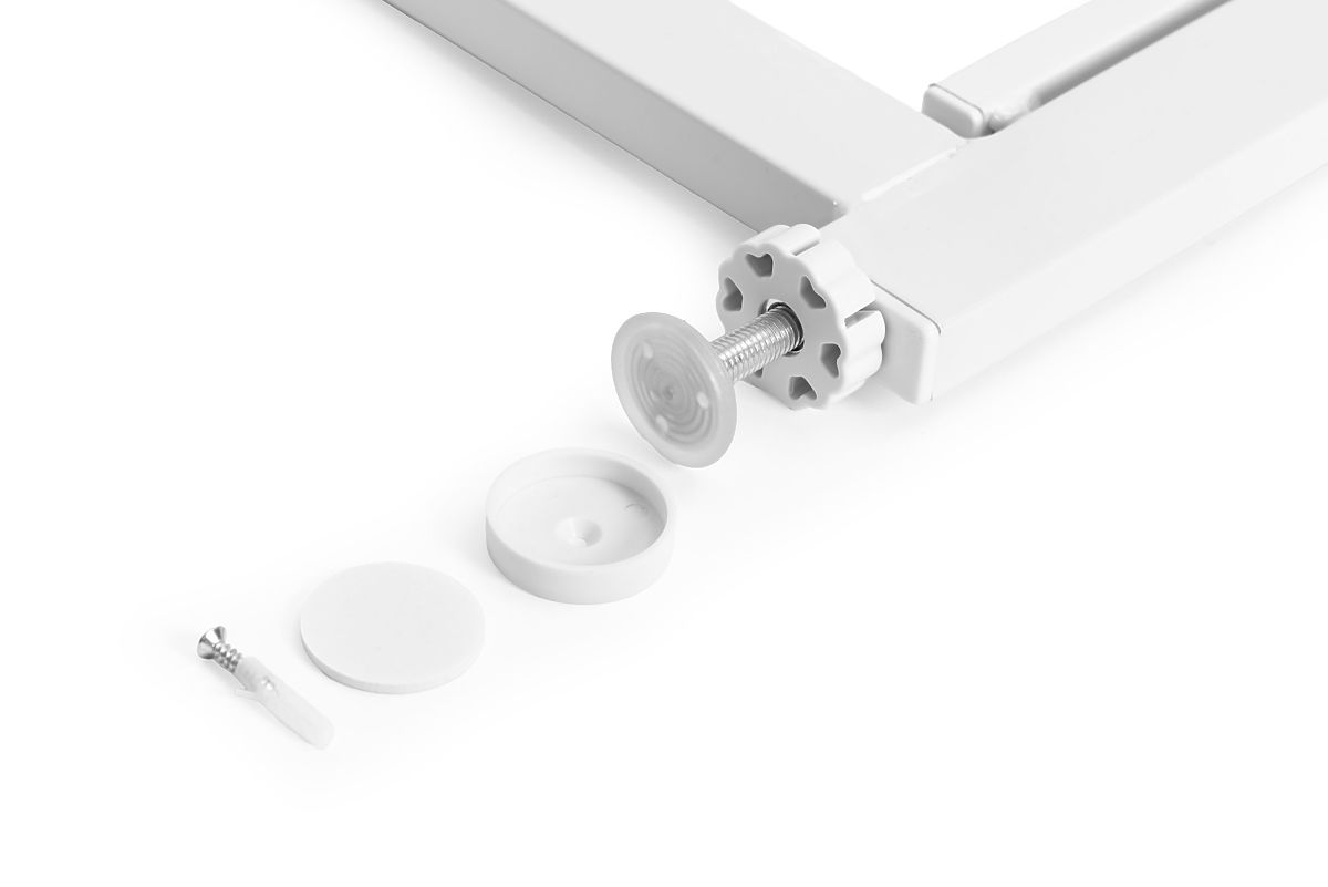 EASY INSTALLATIONThe installation of the gate is extremely simple and requires no tools or drilling holes into walls or door frames. Thanks to the 4-point pressure mounting system, the gate stays securely in place without causing damage to surfaces. Additionally, the included protective pads protect walls and floors from potential scratches, ensuring an aesthetic appearance of the rooms.