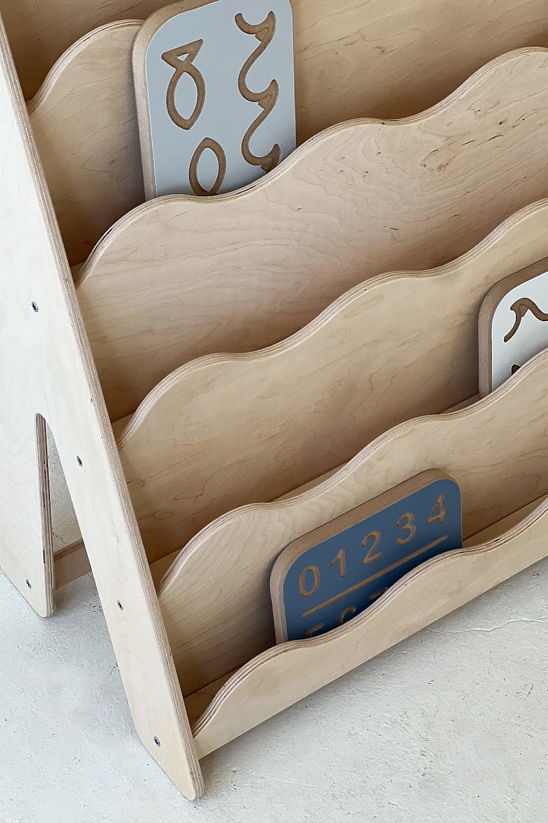 WAVE M Bookshelf for kids with wavy edges and open shelves. .. more