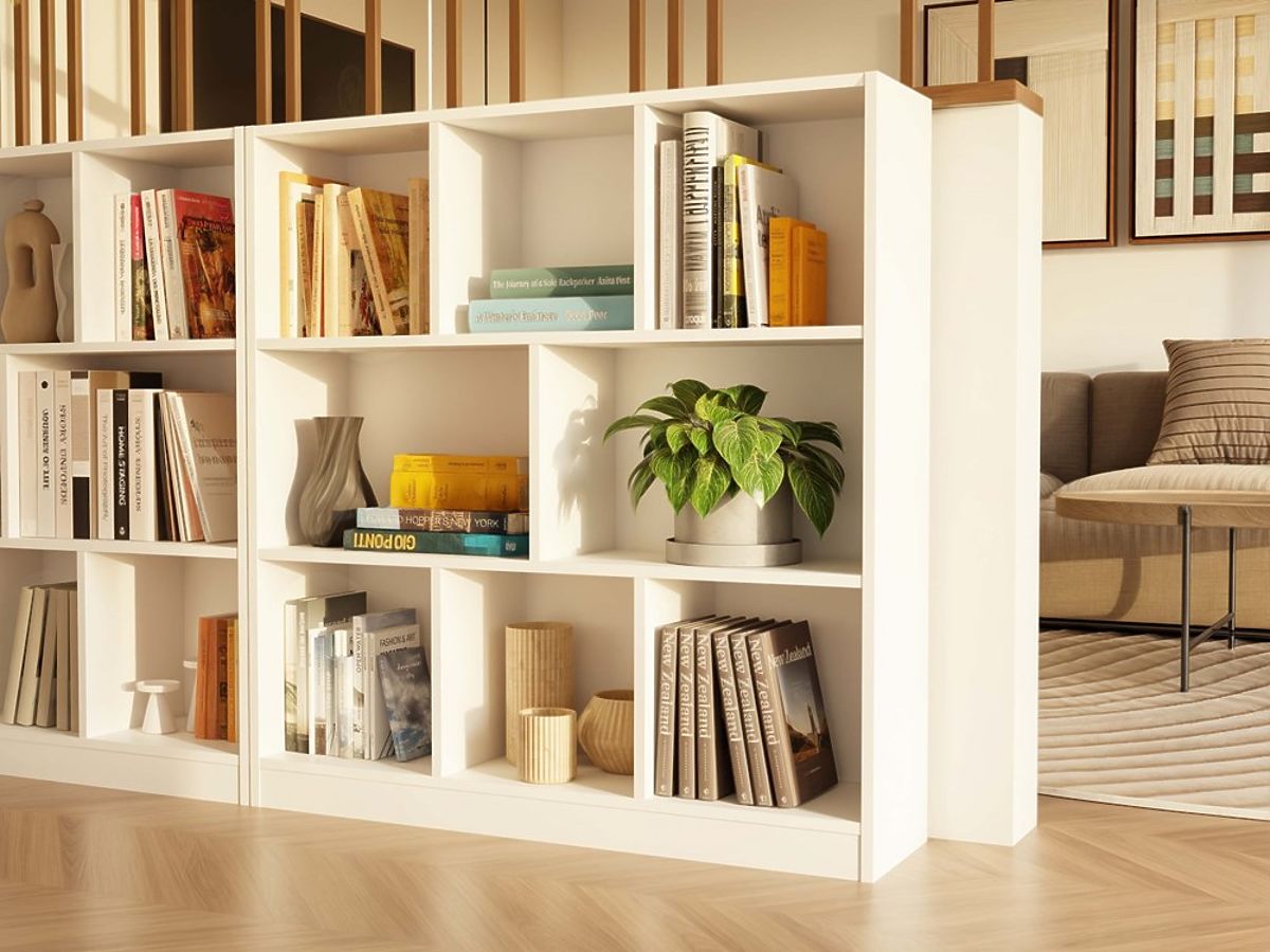 8 functional shelves/compartments – ideal for books, decorations, or storage boxes.