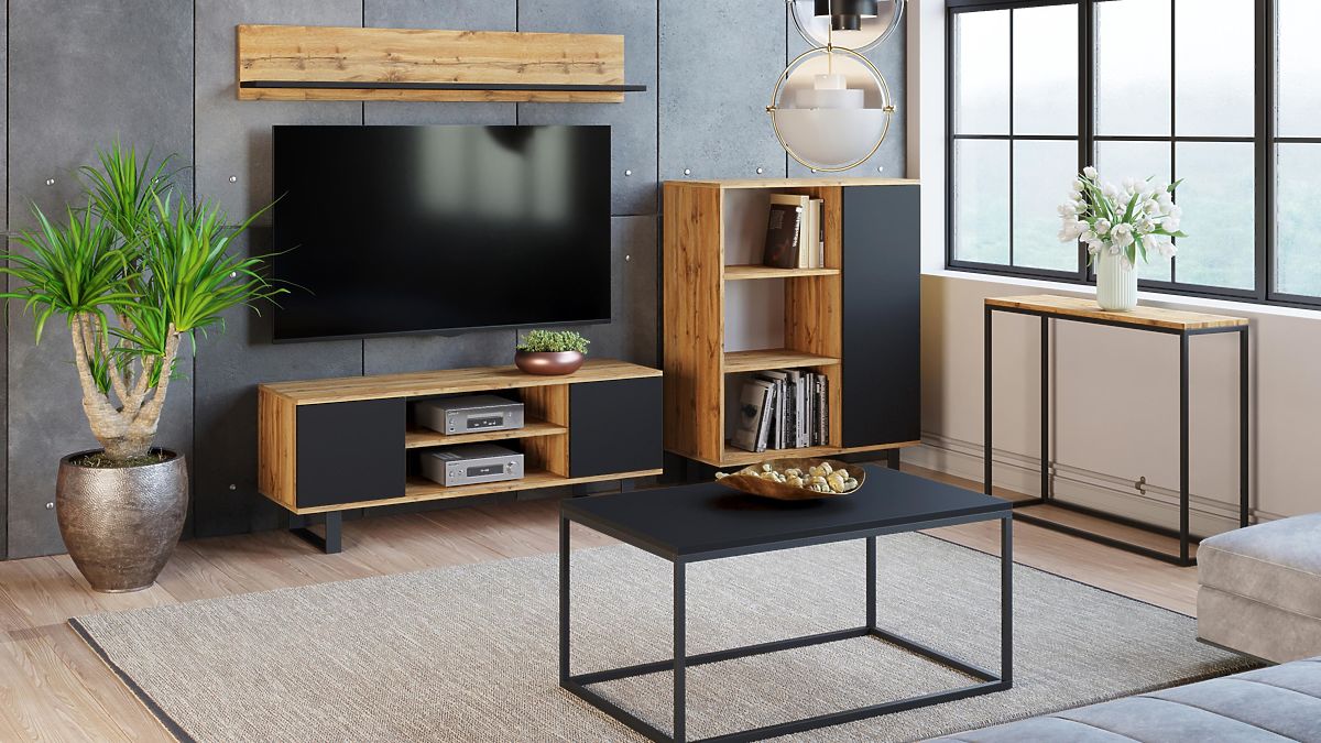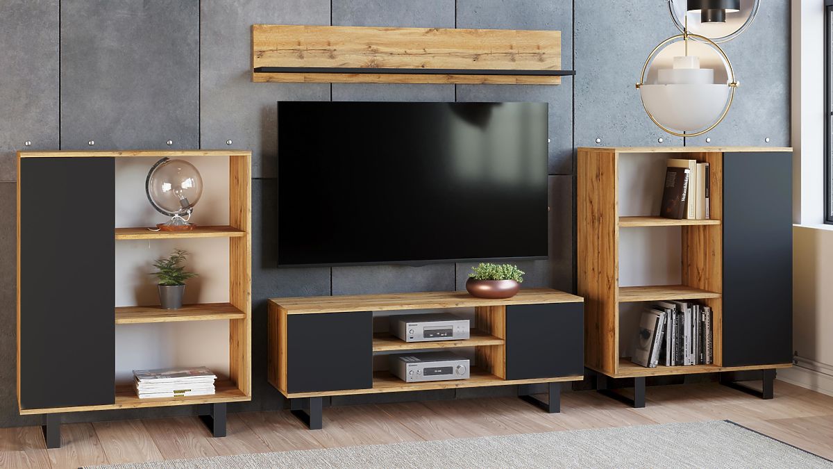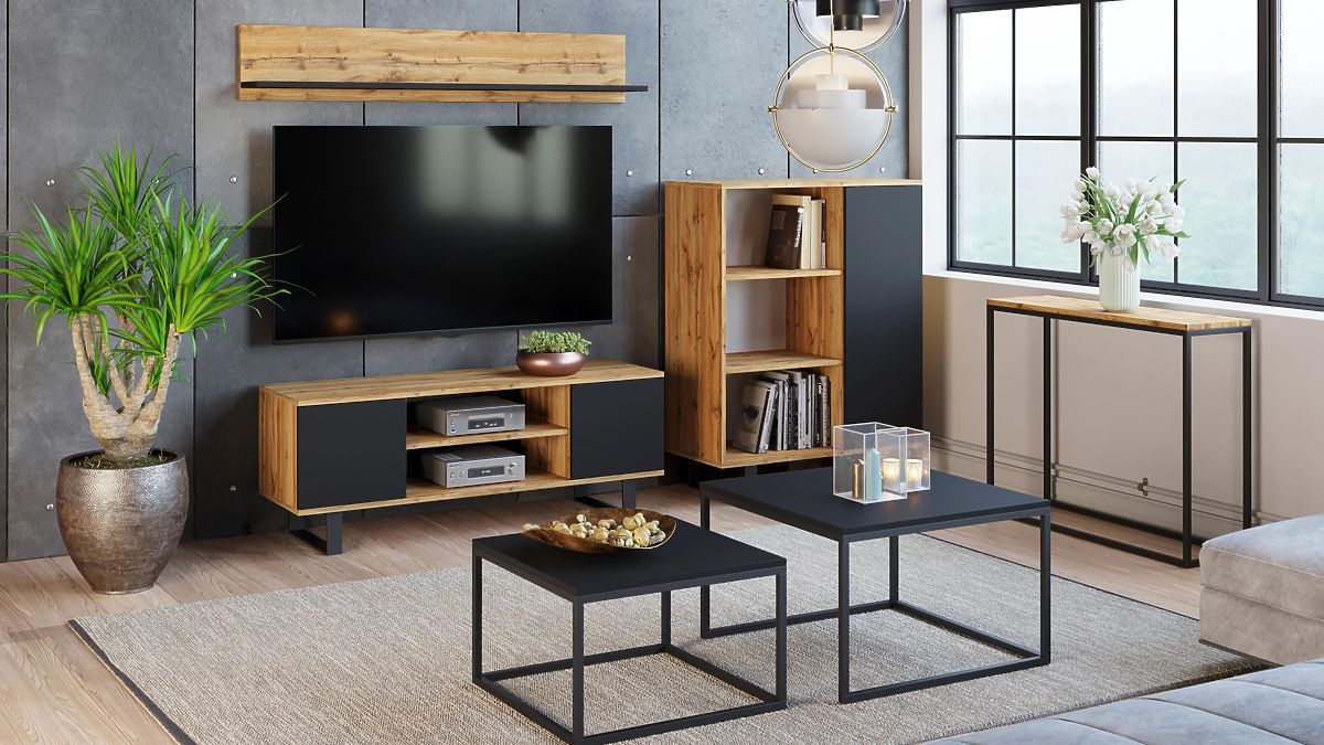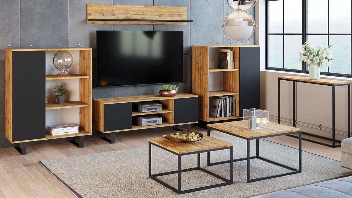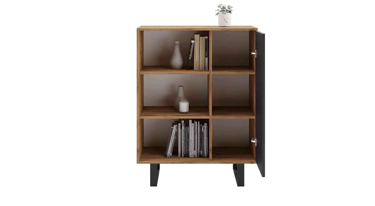 The FONDI cabinet is an exceptionally functional piece of furniture for your living room, combining simplicity with an eye-catching appearance inspired by the loft style. With minimalist forms and raw materials such as metal elements and wood, the cabinet brings a unique atmosphere and character to the interior. It is the perfect solution for those who appreciate practicality and modern design in one. The FONDI cabinet is both functional and aesthetic, offering space for storage and the possibility to display favorite decorations.