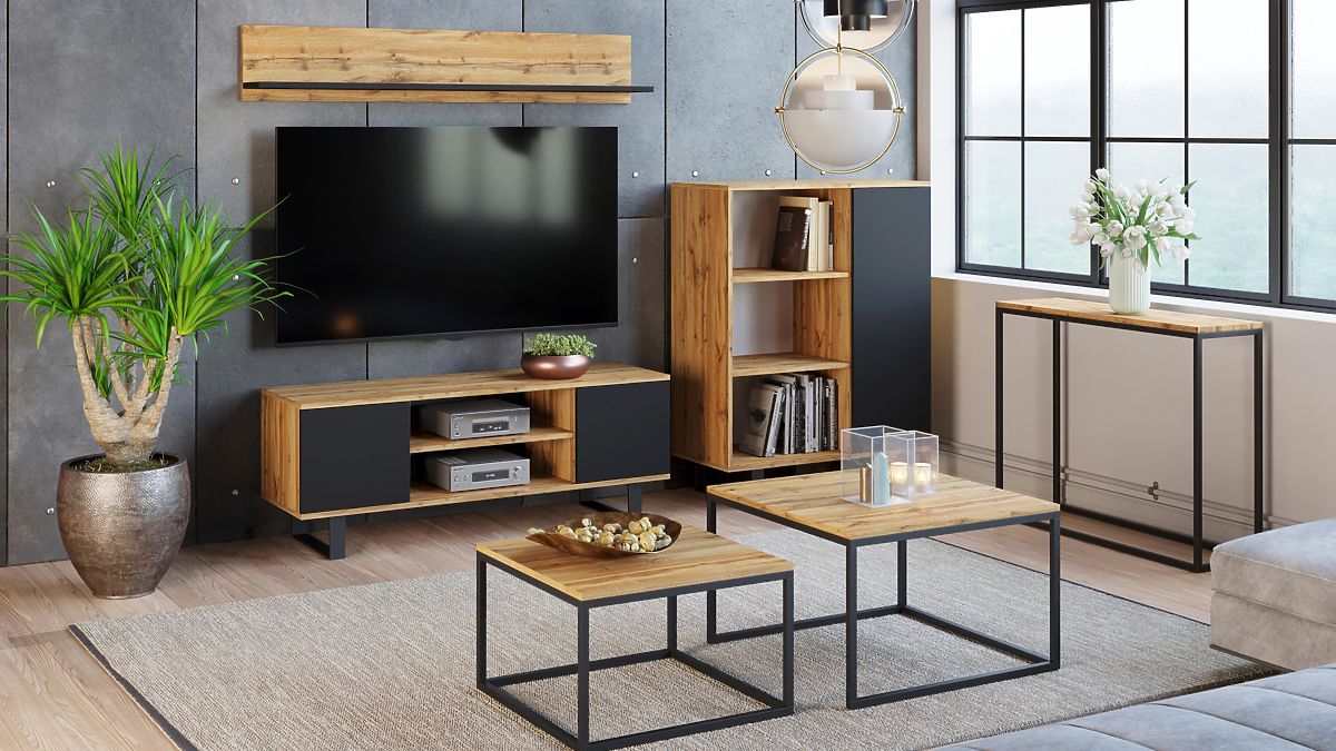 The FONDI cabinet in loft style captivates with its simplicity and elegance, which are characteristic features of the loft style. With minimalist forms and raw materials such as metal elements and wood, the cabinet brings a unique atmosphere and character to the interior.