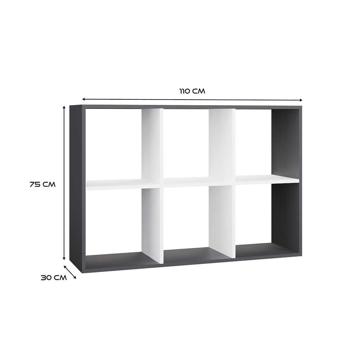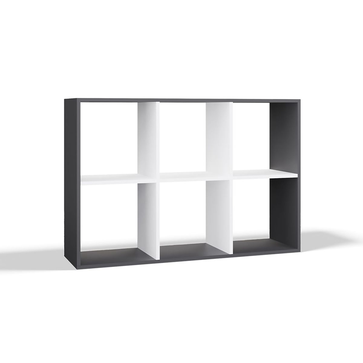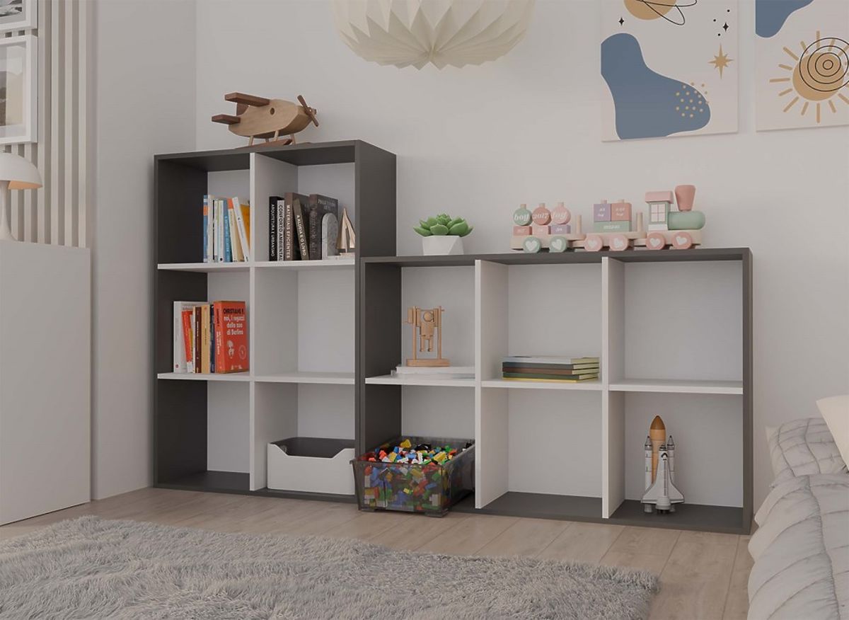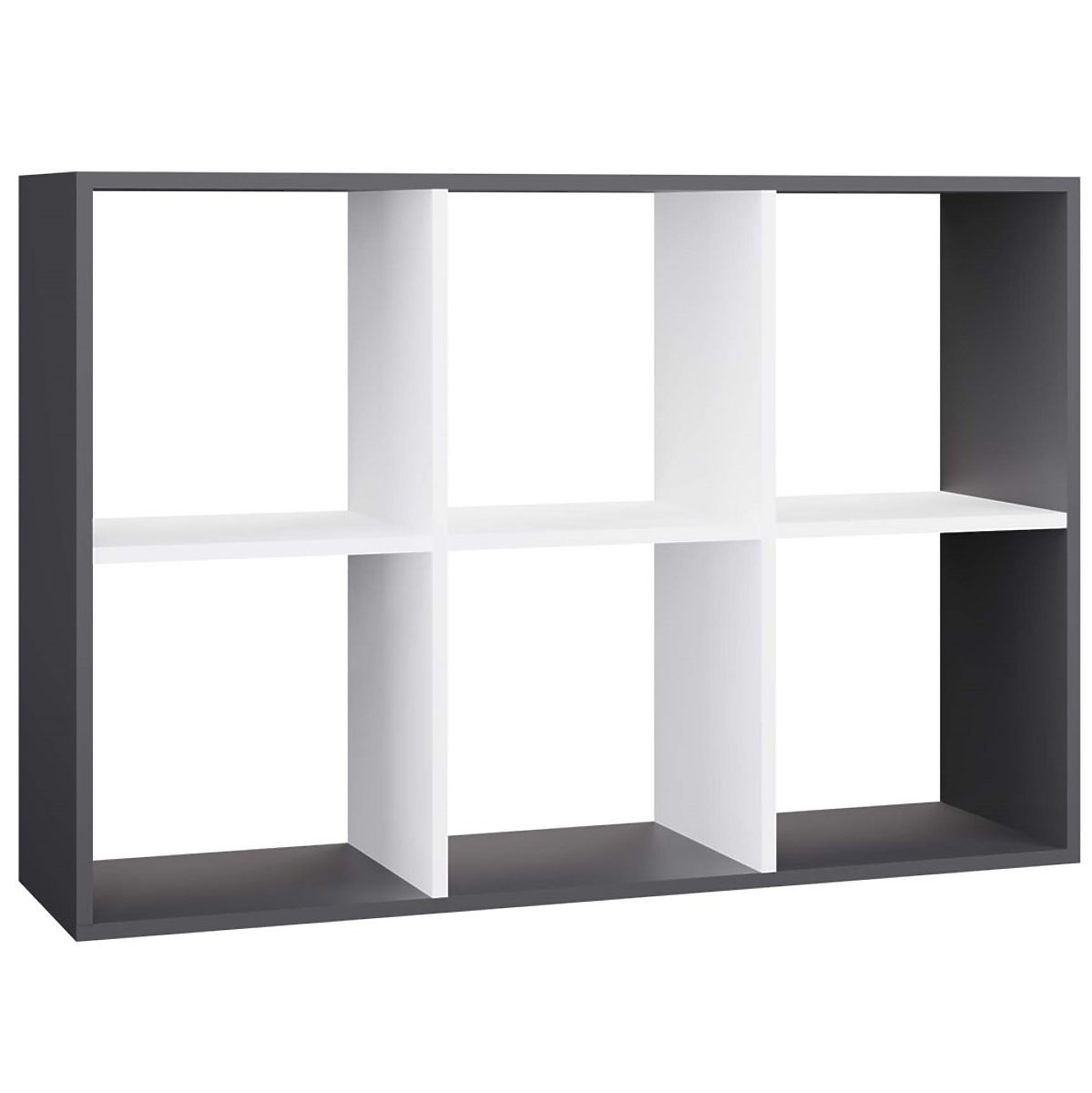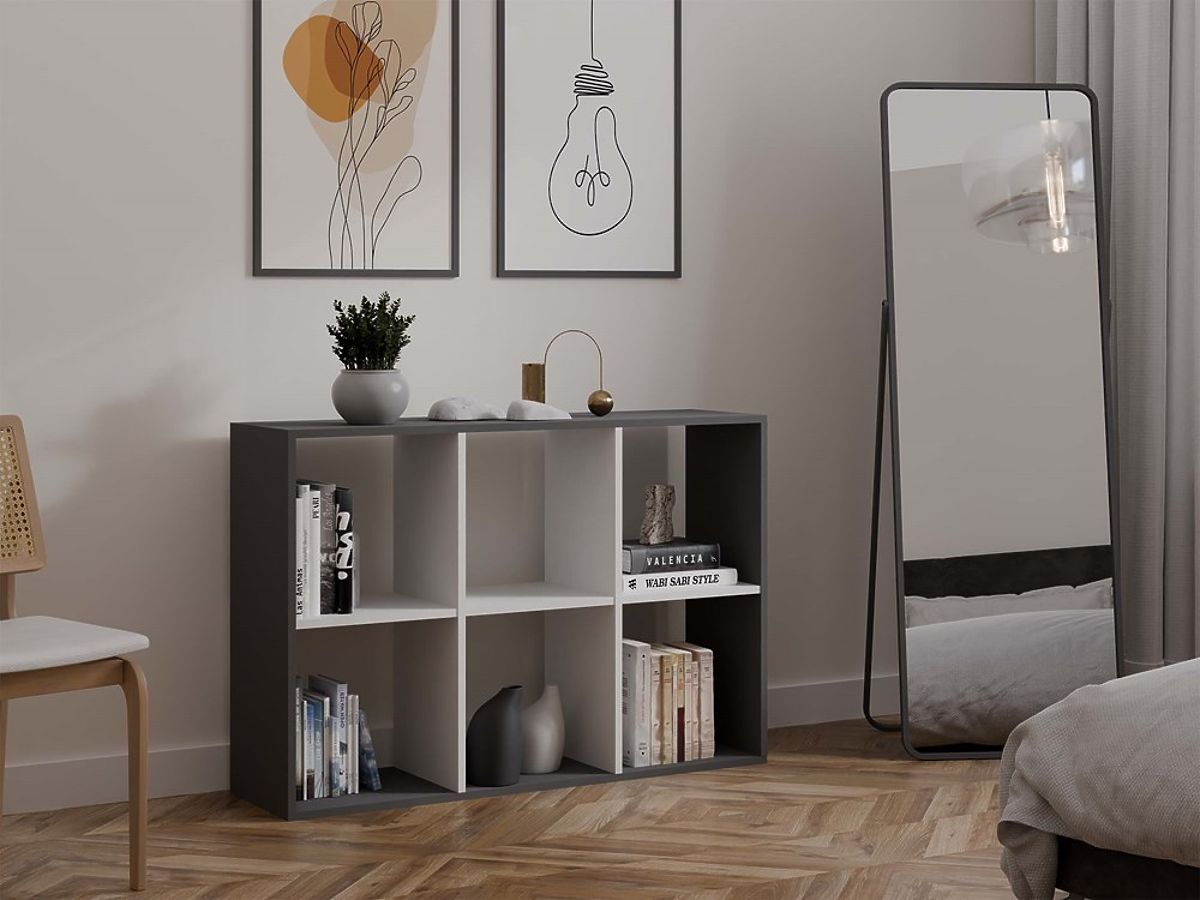 Anthracite and white shelf with 6 compartments for books and toys. .. more